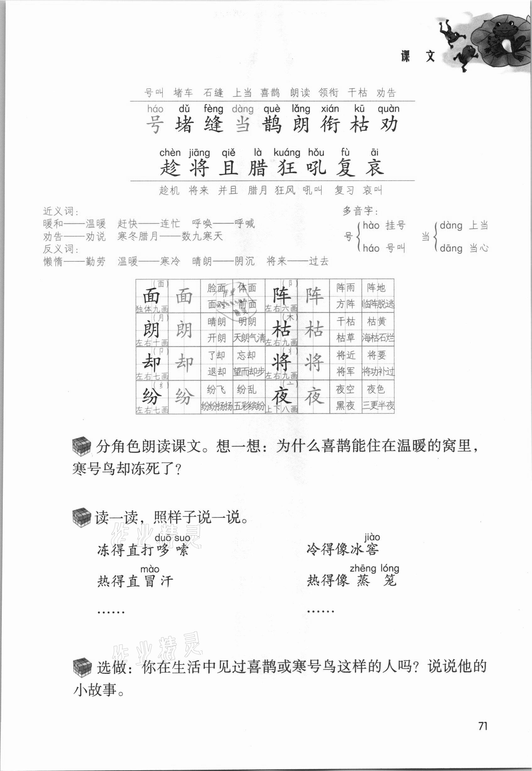 2021年教材课本二年级语文上册人教版参考答案第71页