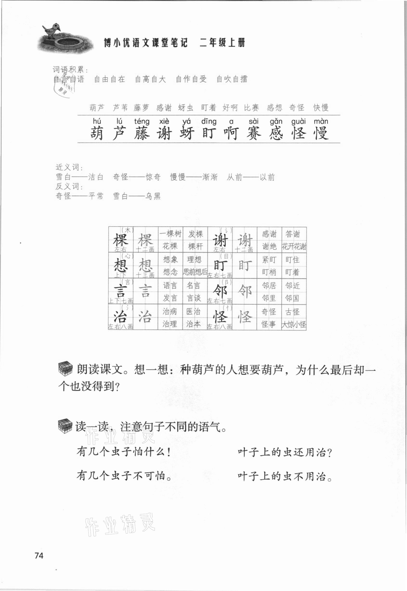 2021年教材课本二年级语文上册人教版参考答案第74页