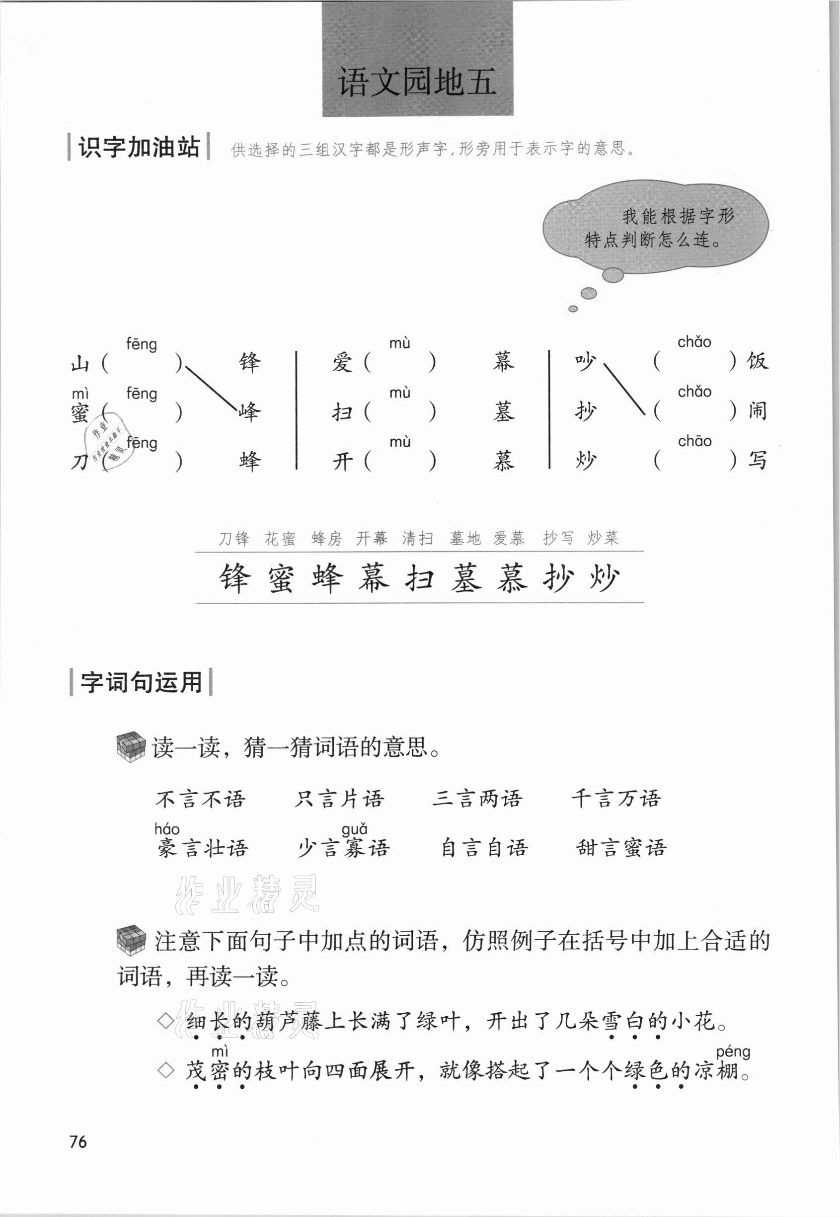 2021年教材课本二年级语文上册人教版参考答案第76页