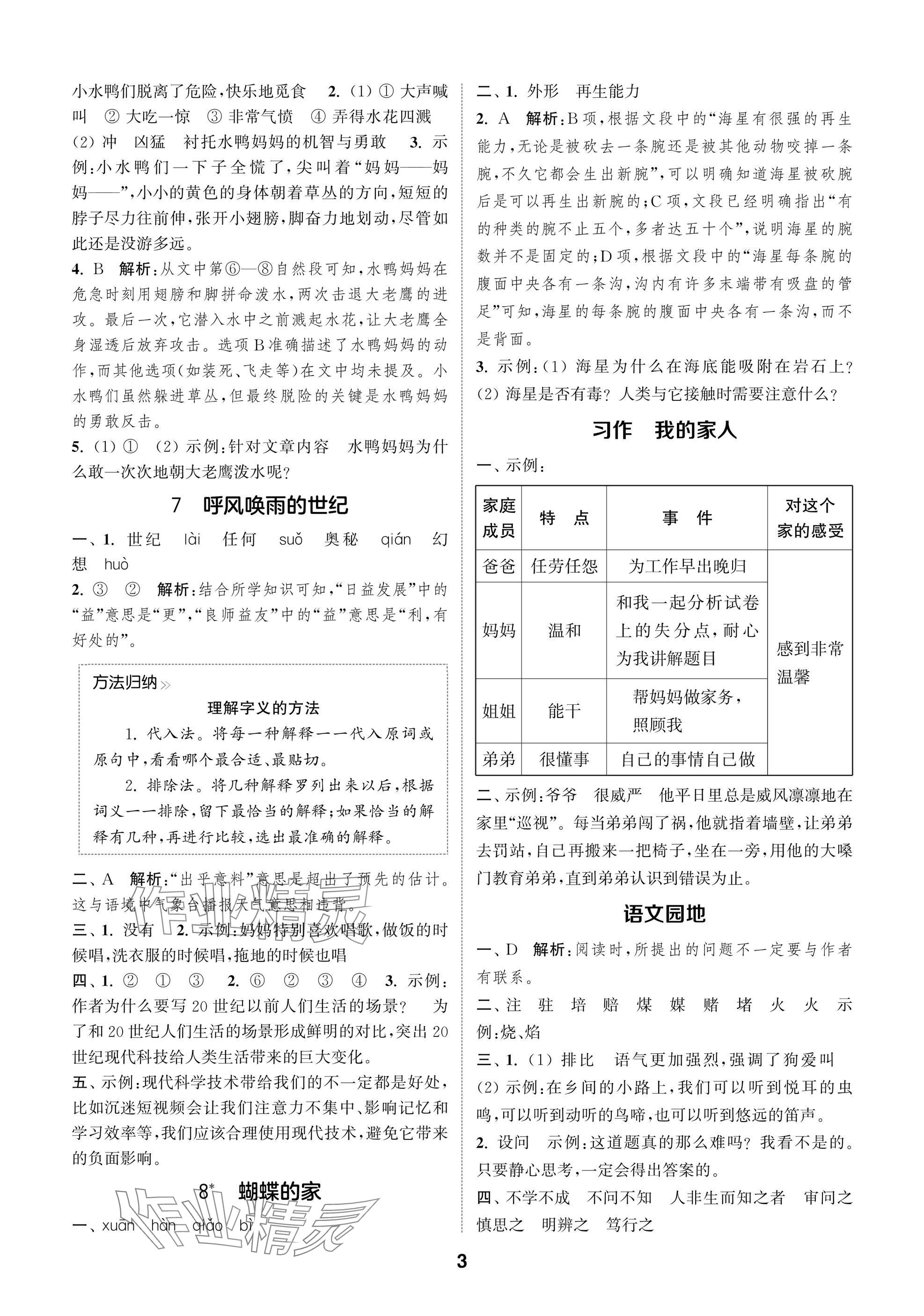 2025年课时作业本闯关练四年级语文上册人教版参考答案第3页