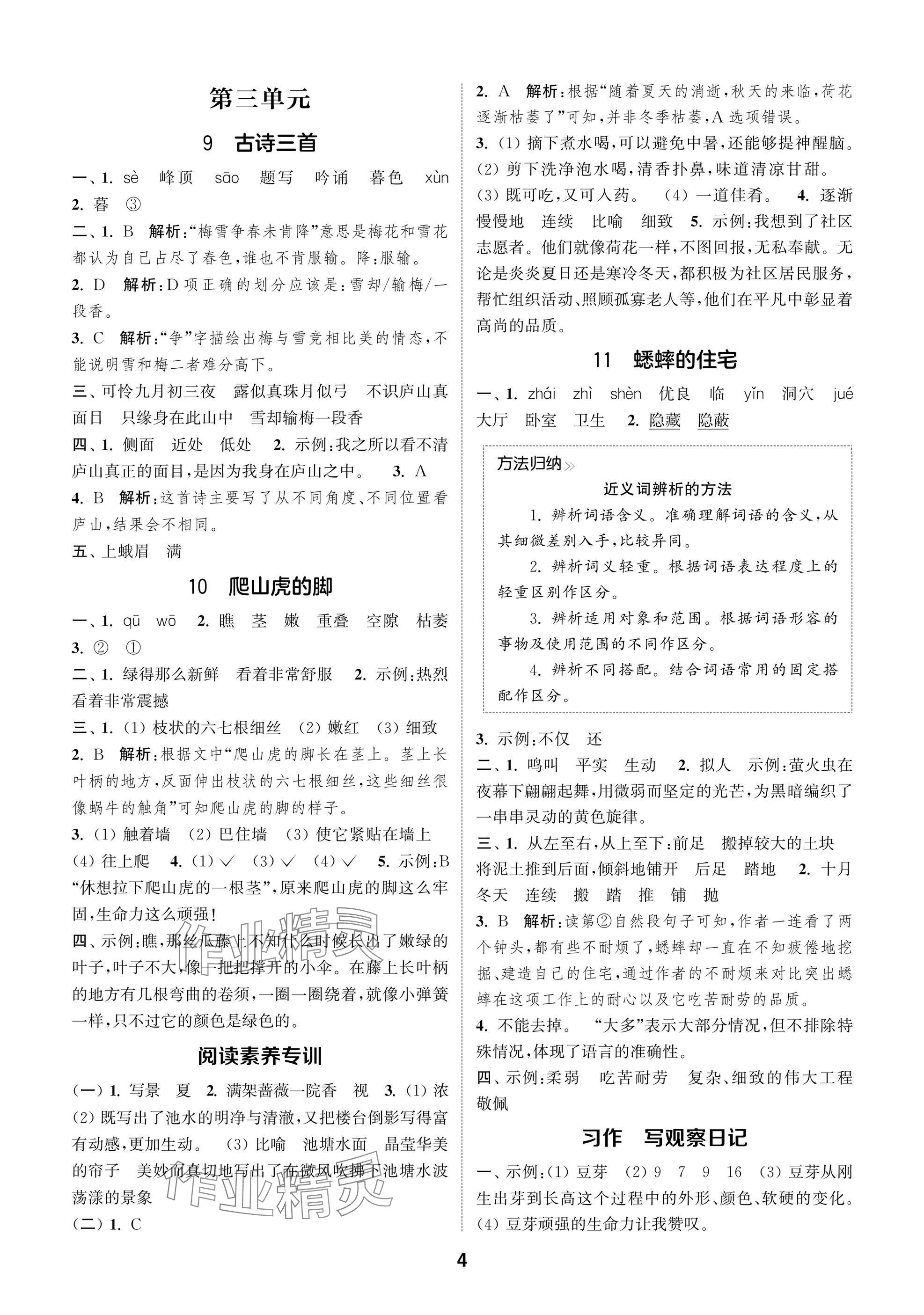 2025年课时作业本闯关练四年级语文上册人教版参考答案第4页