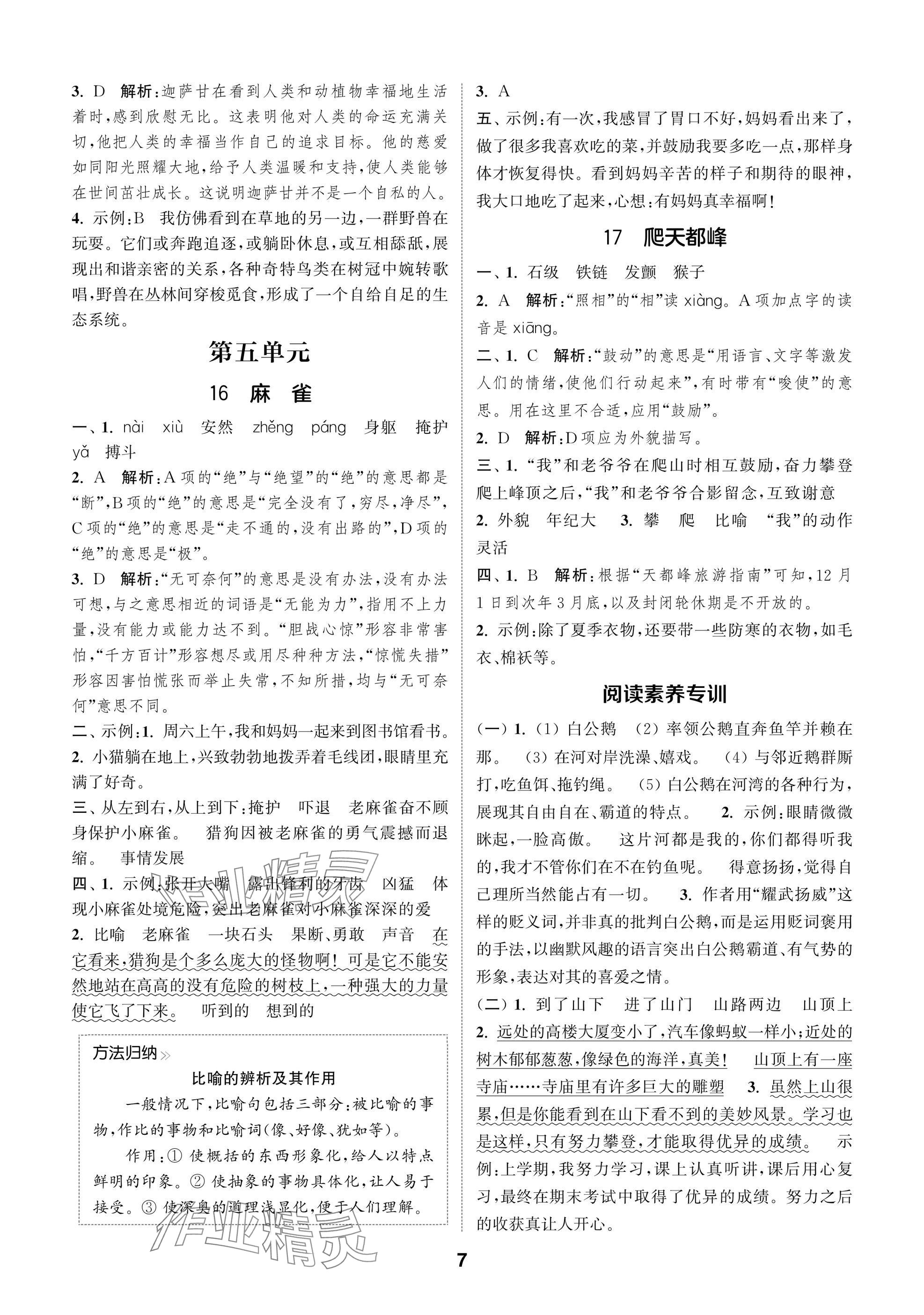 2025年课时作业本闯关练四年级语文上册人教版参考答案第7页