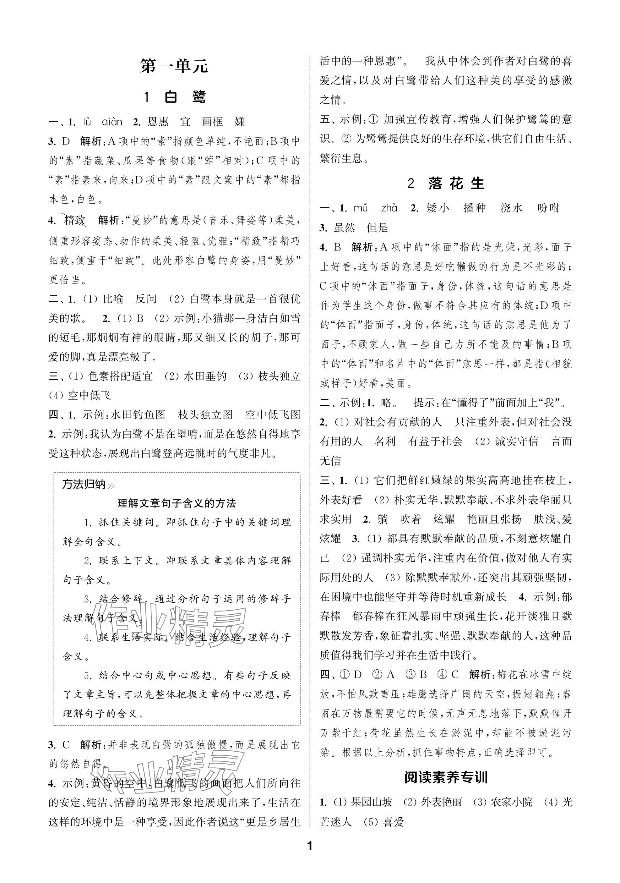 2025年课时作业本闯关练五年级语文上册人教版参考答案第1页