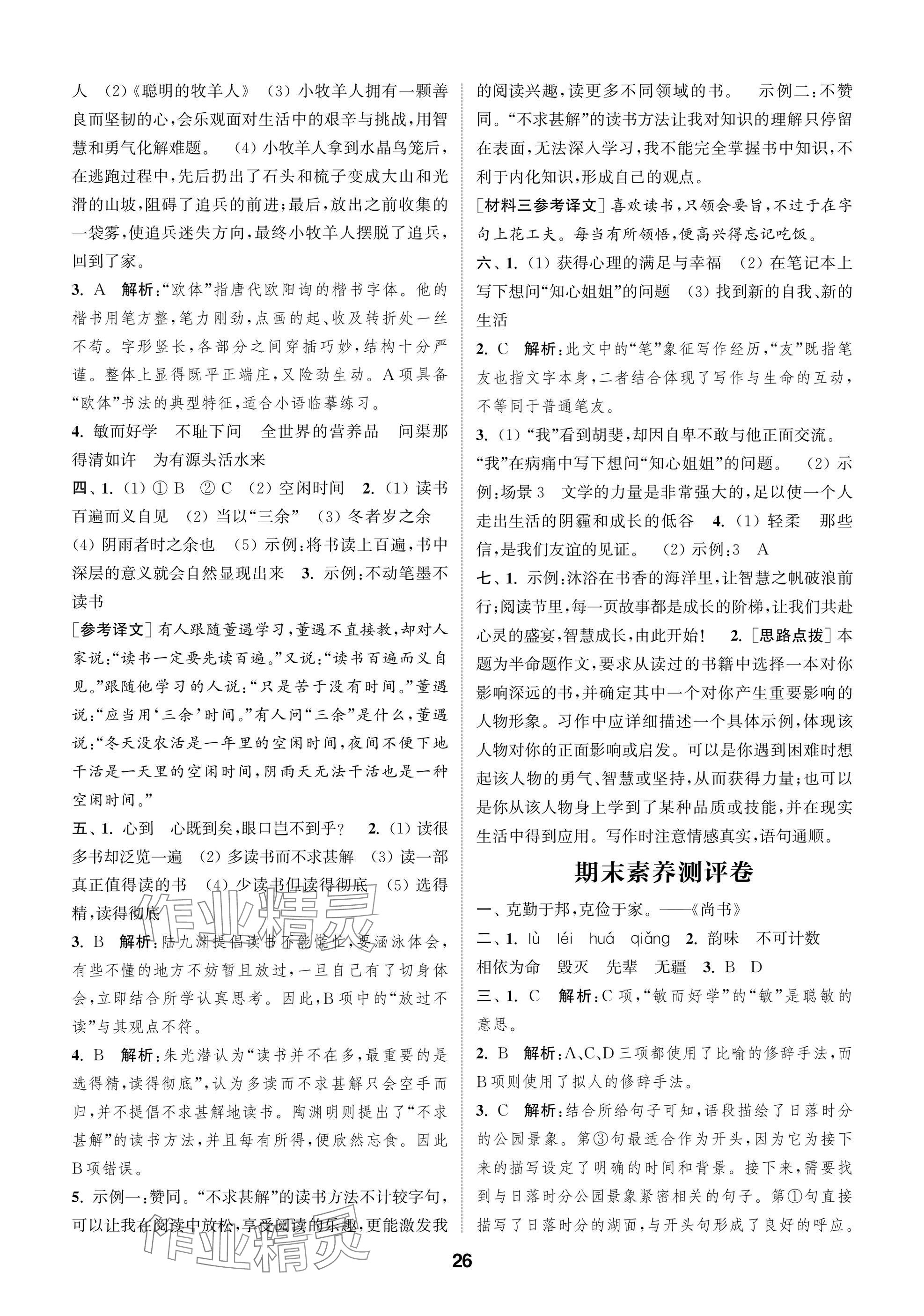 2025年课时作业本闯关练五年级语文上册人教版参考答案第26页