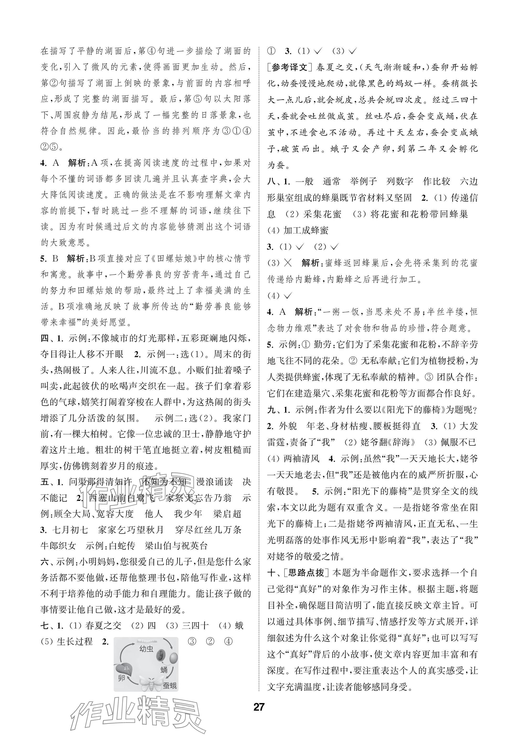 2025年课时作业本闯关练五年级语文上册人教版参考答案第27页