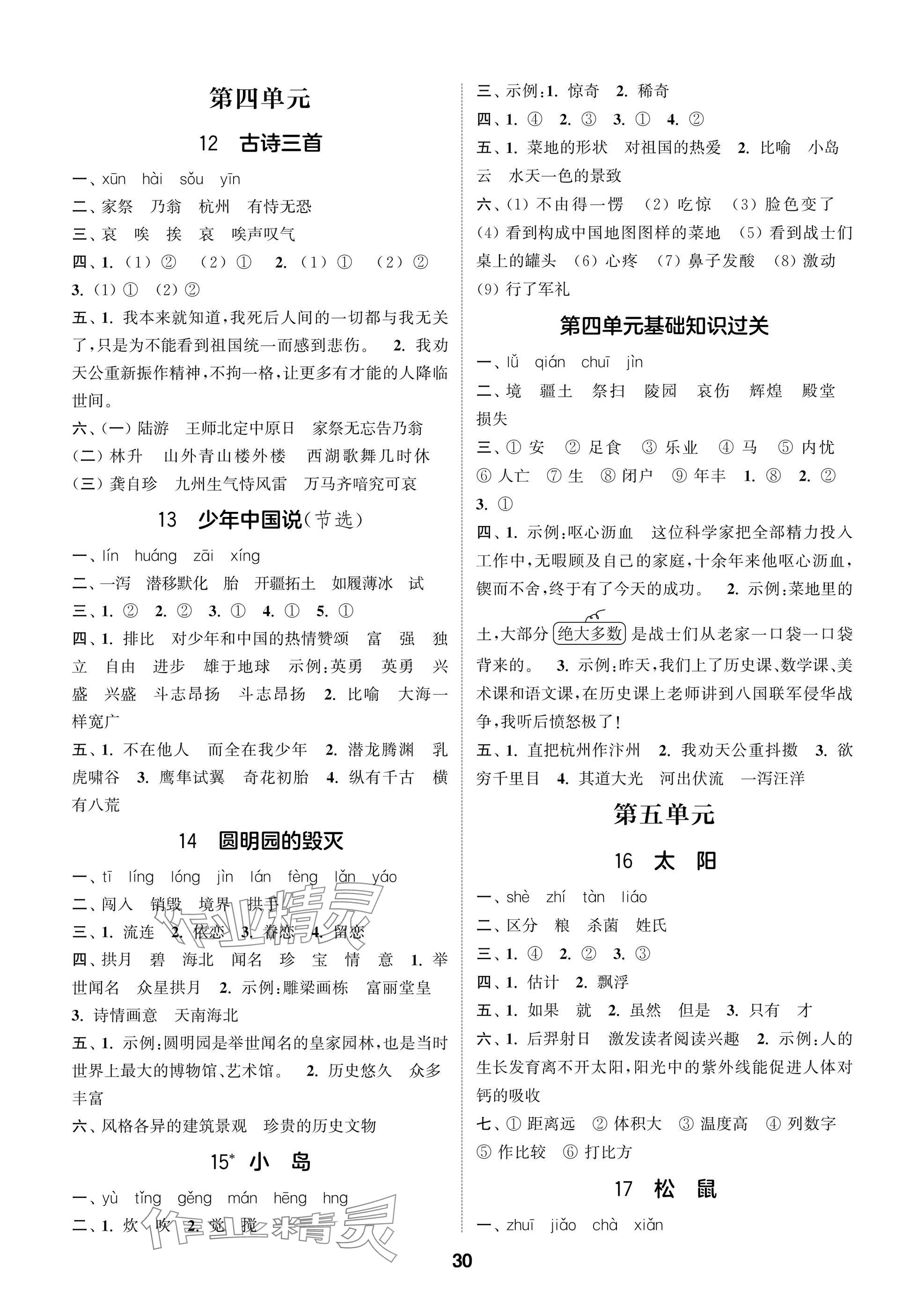 2025年课时作业本闯关练五年级语文上册人教版参考答案第30页