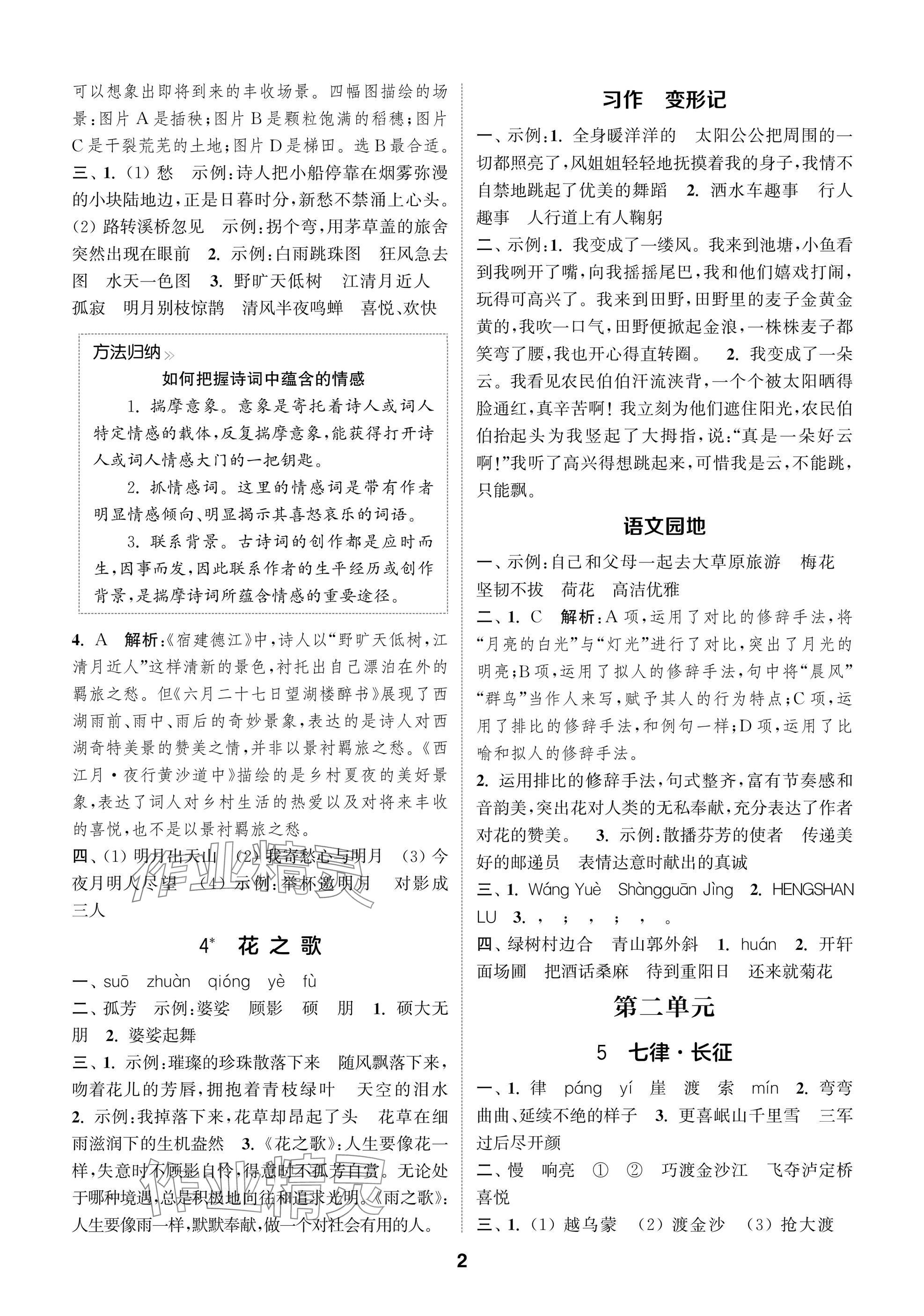 2025年课时作业本闯关练六年级语文上册人教版参考答案第2页