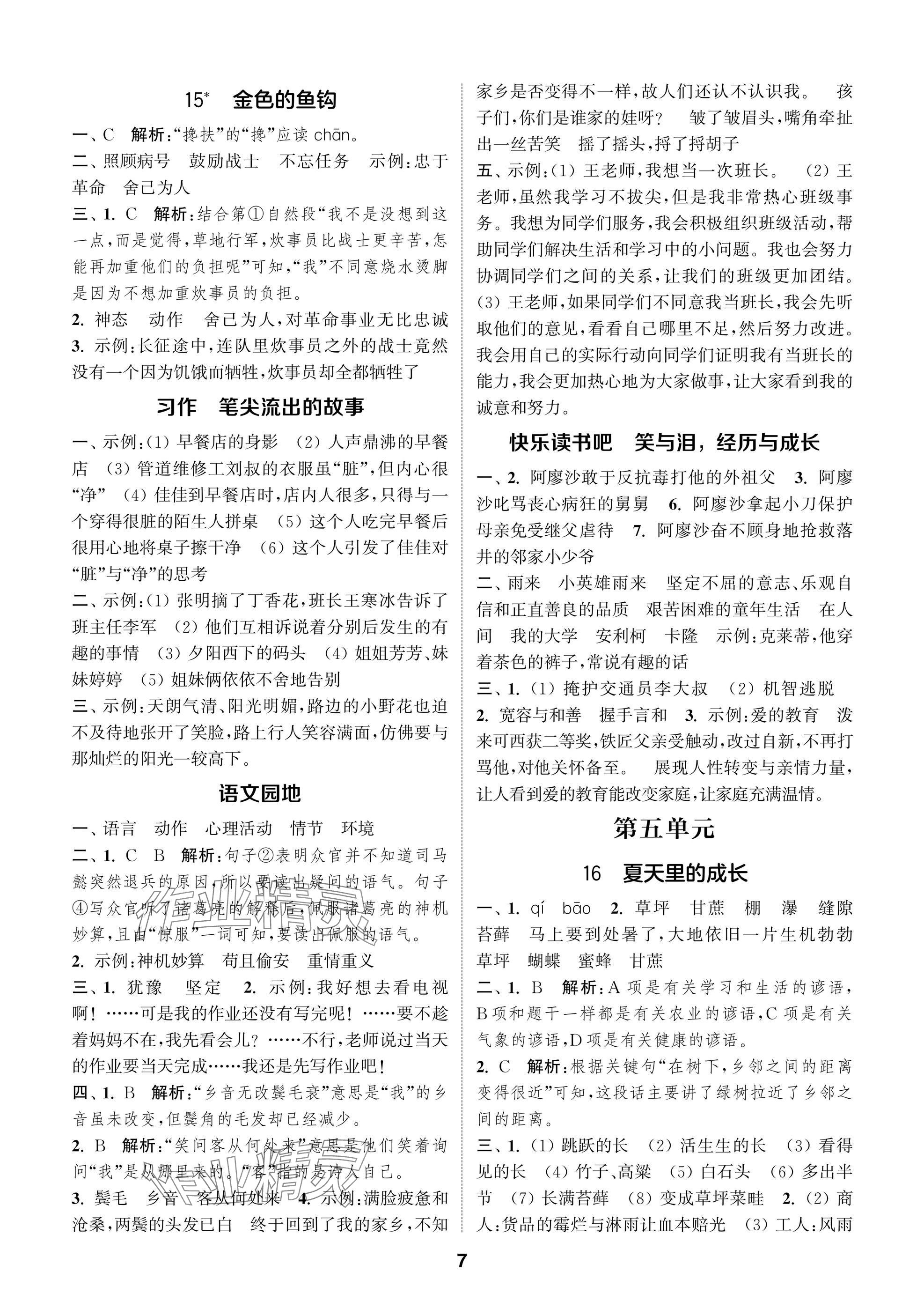 2025年课时作业本闯关练六年级语文上册人教版参考答案第7页