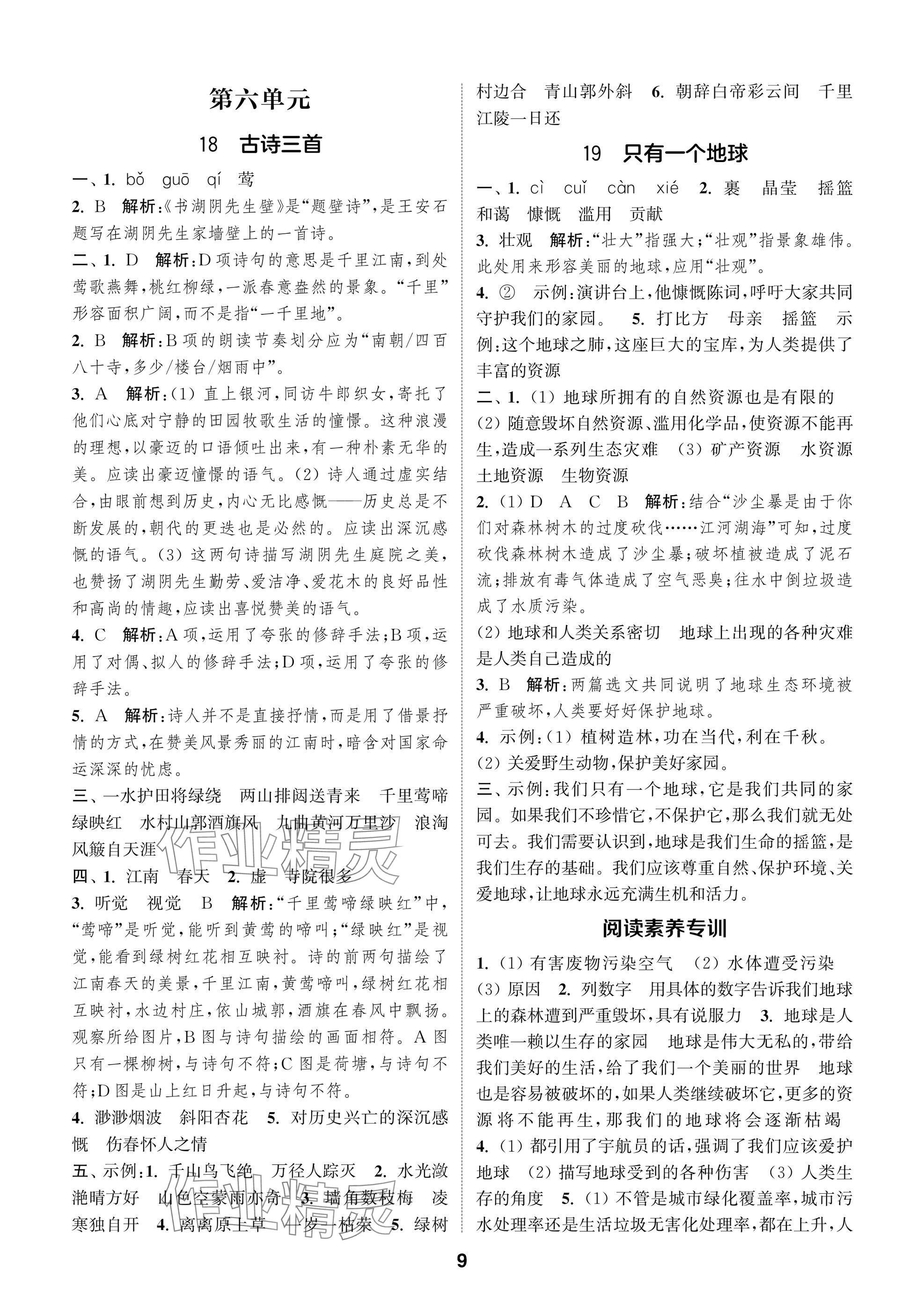 2025年课时作业本闯关练六年级语文上册人教版参考答案第9页