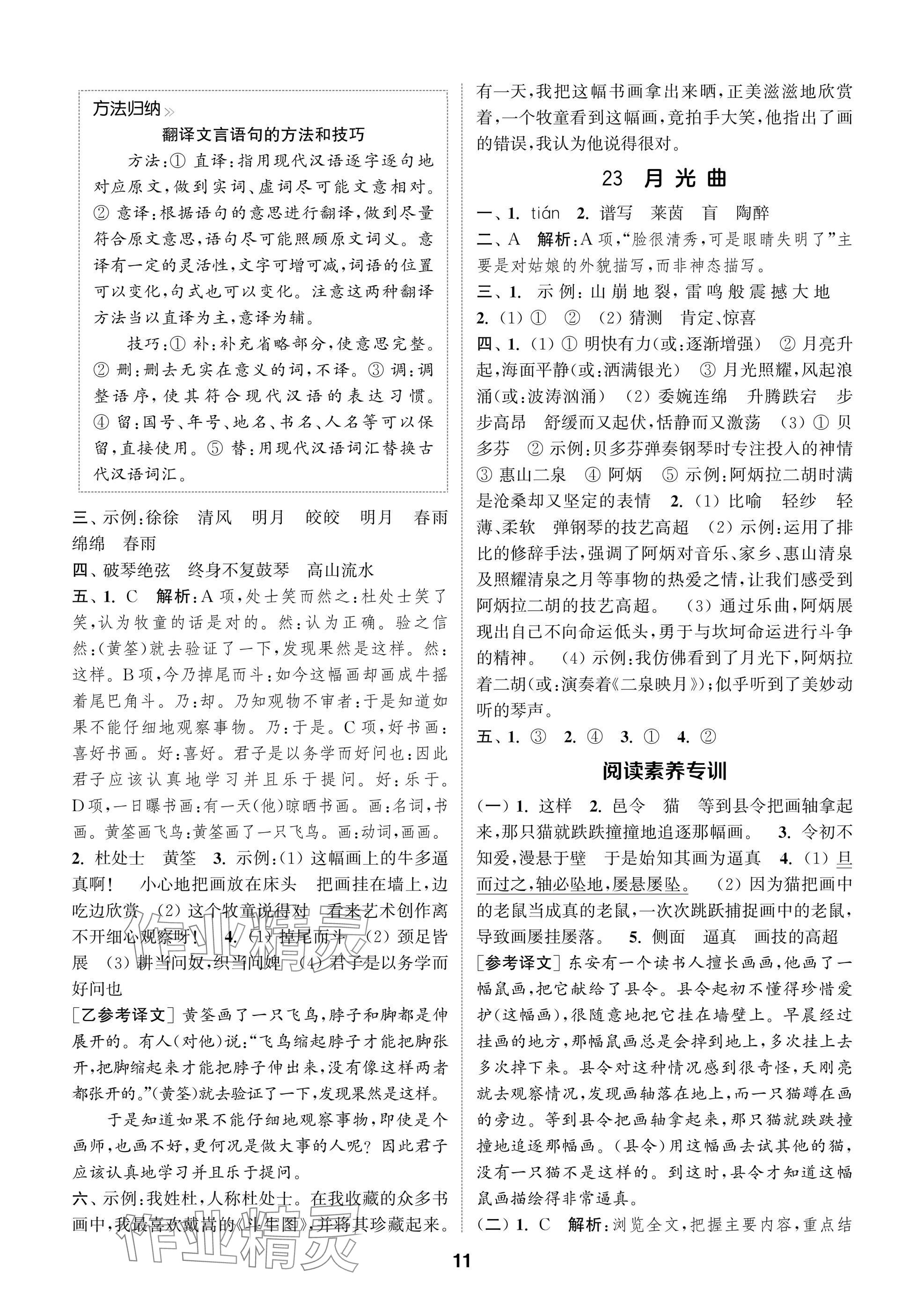 2025年课时作业本闯关练六年级语文上册人教版参考答案第11页
