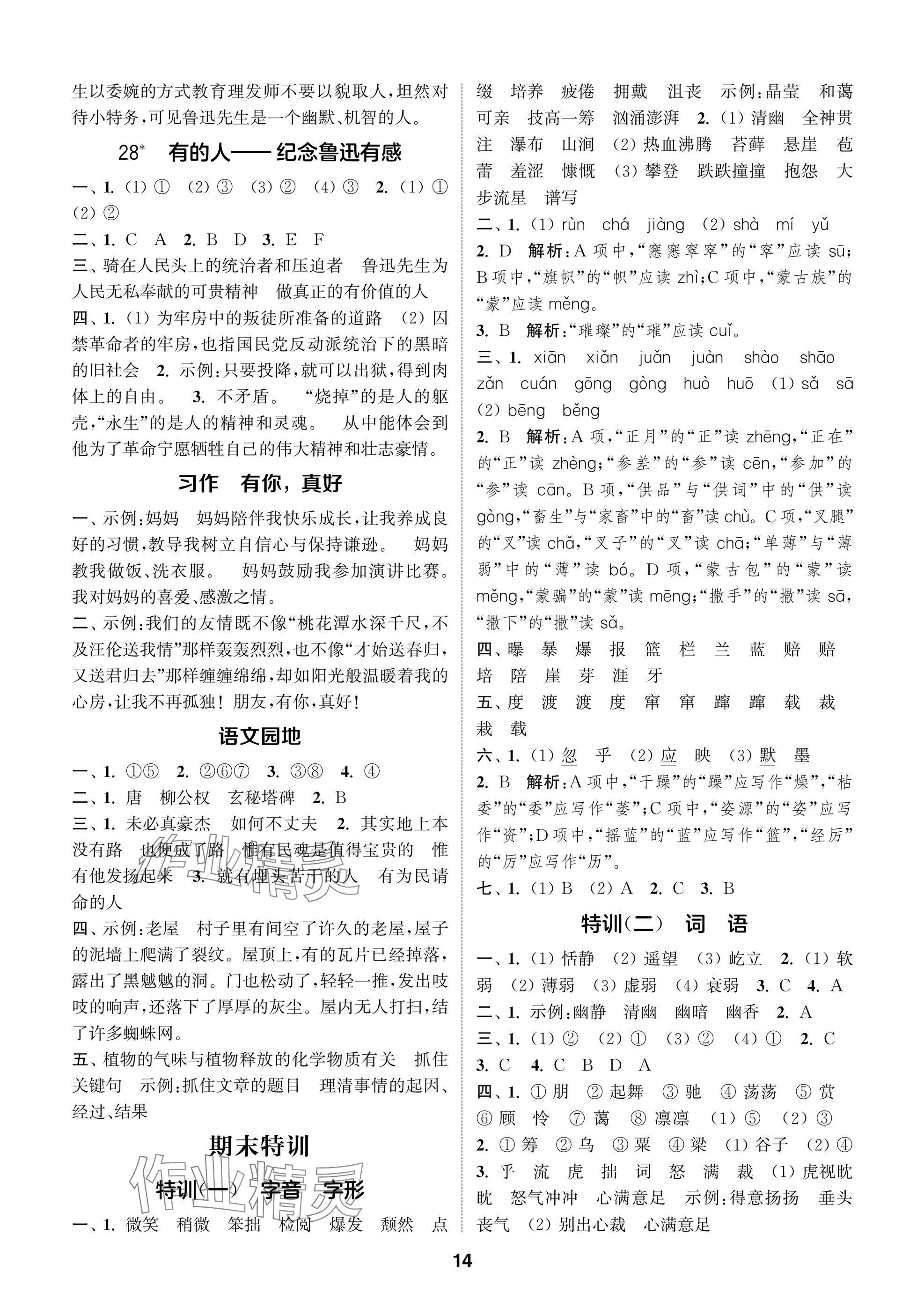 2025年课时作业本闯关练六年级语文上册人教版参考答案第14页