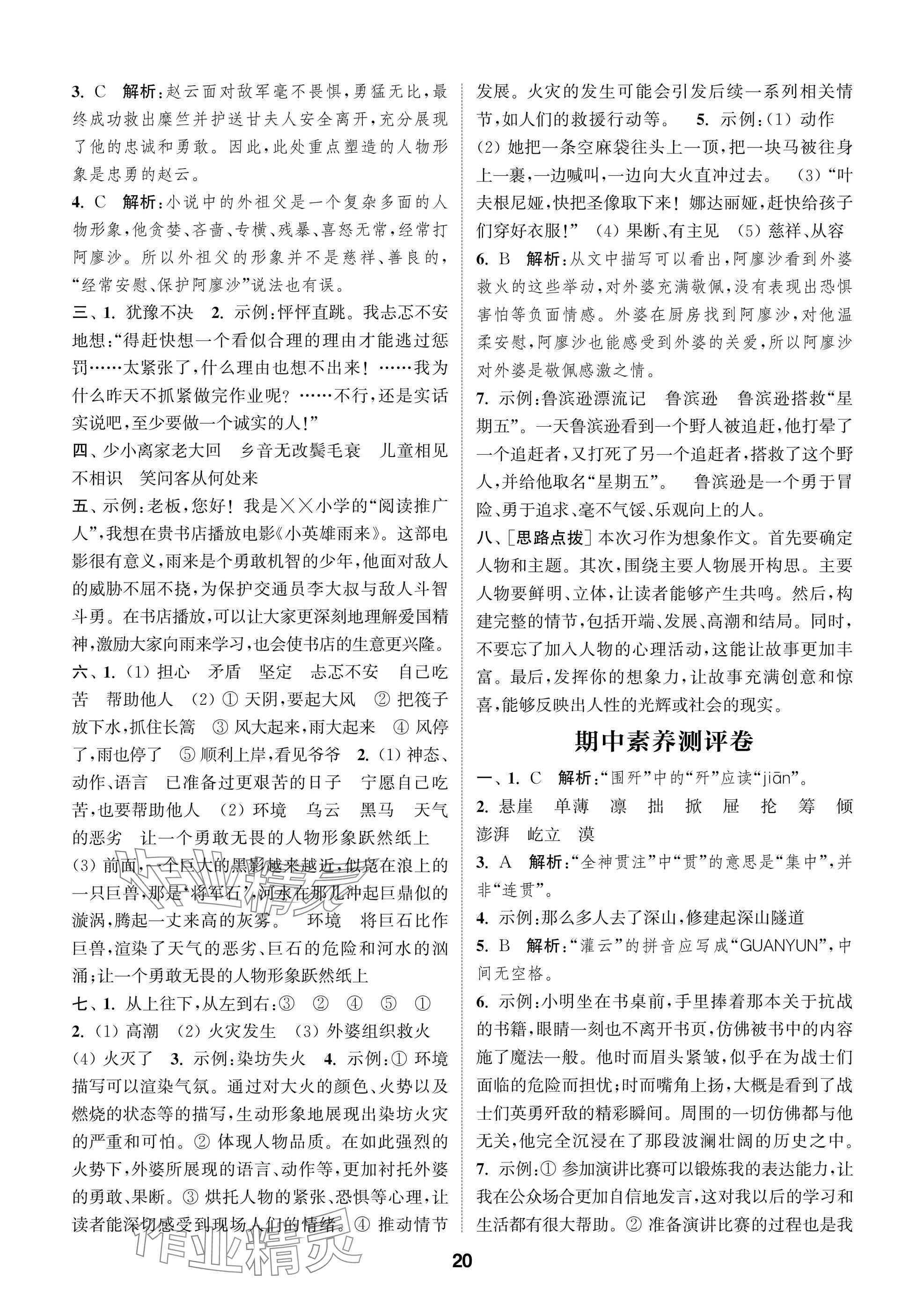 2025年课时作业本闯关练六年级语文上册人教版参考答案第20页