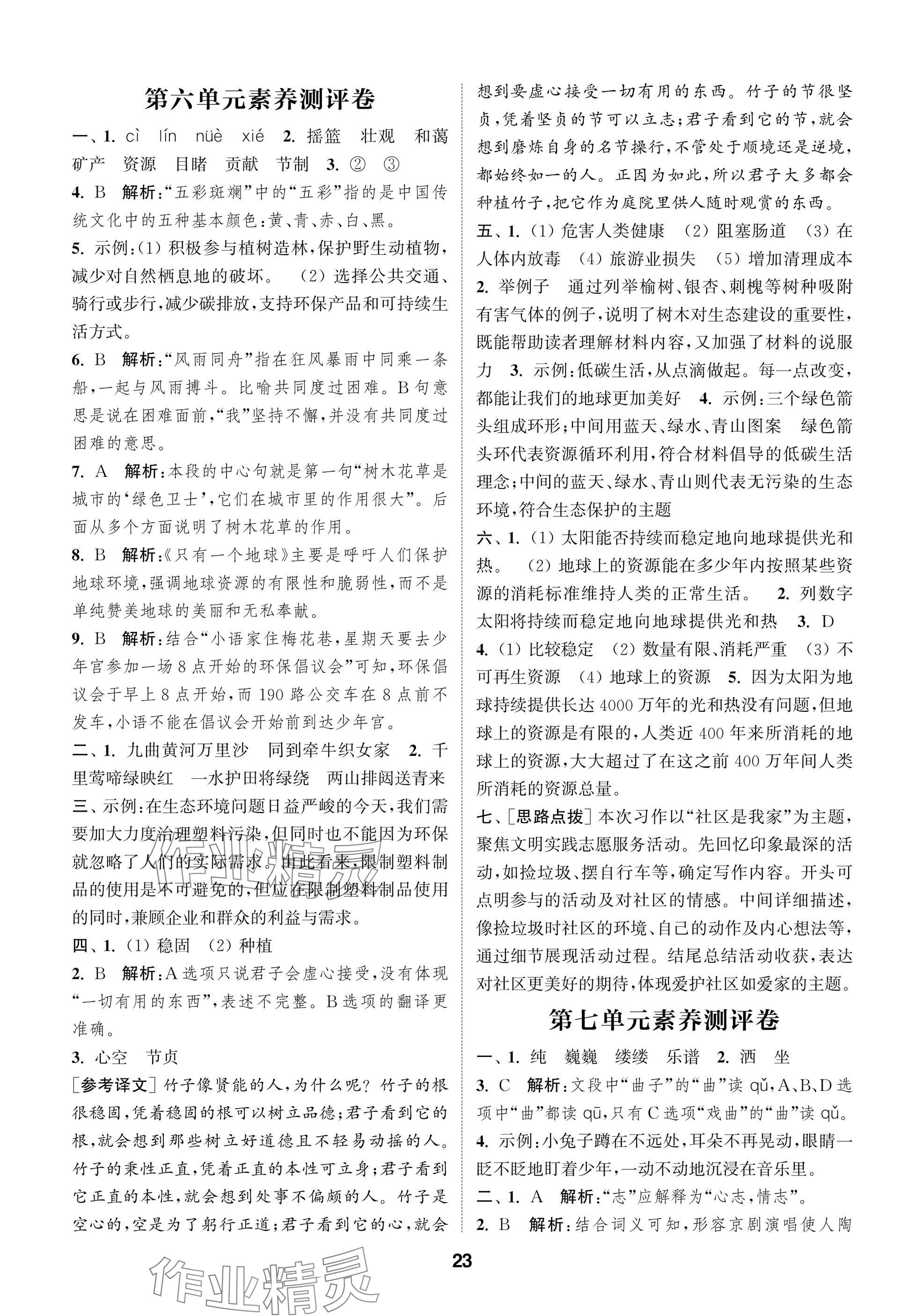 2025年课时作业本闯关练六年级语文上册人教版参考答案第23页