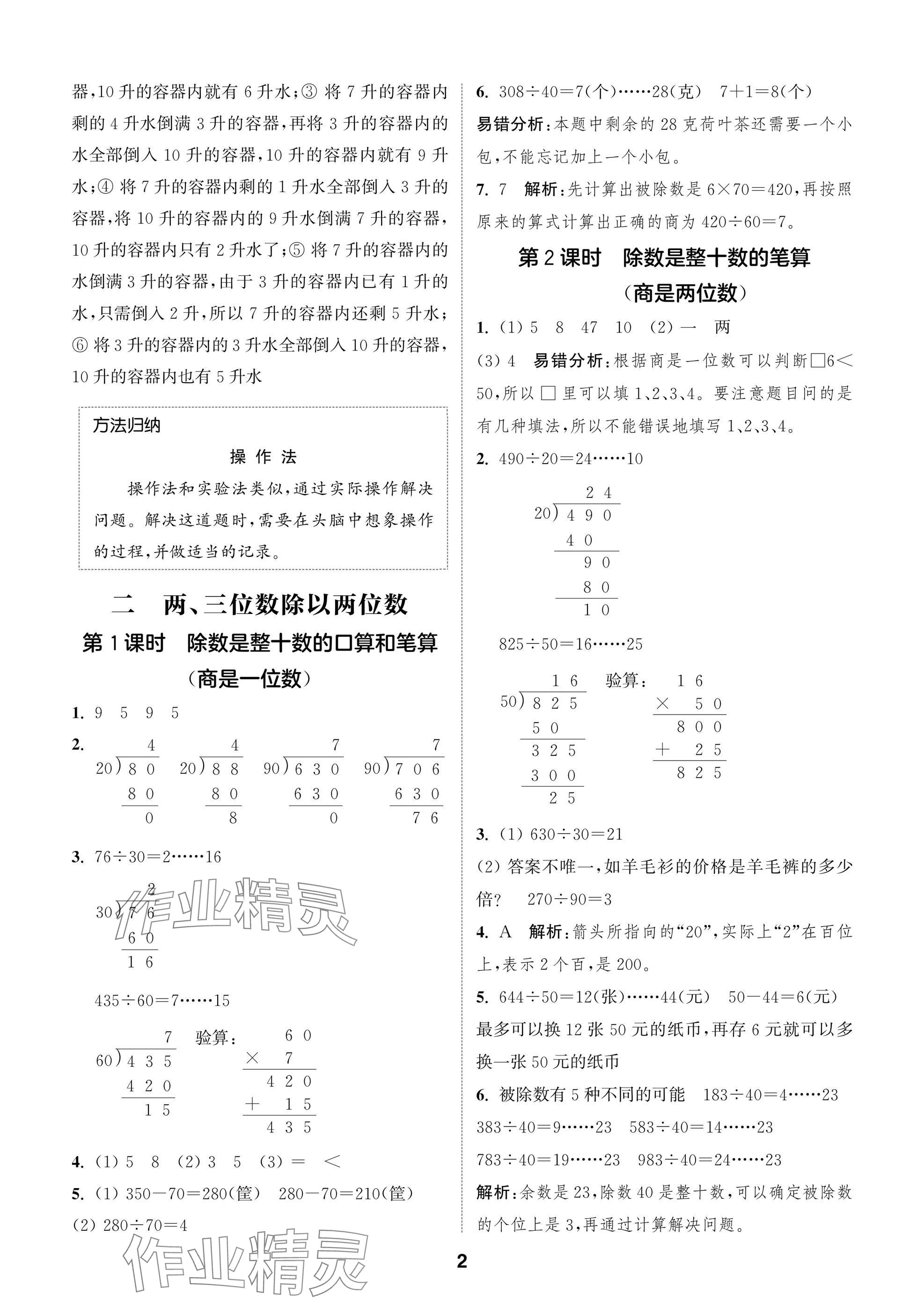 2025年课时作业本闯关练四年级数学上册苏教版参考答案第2页