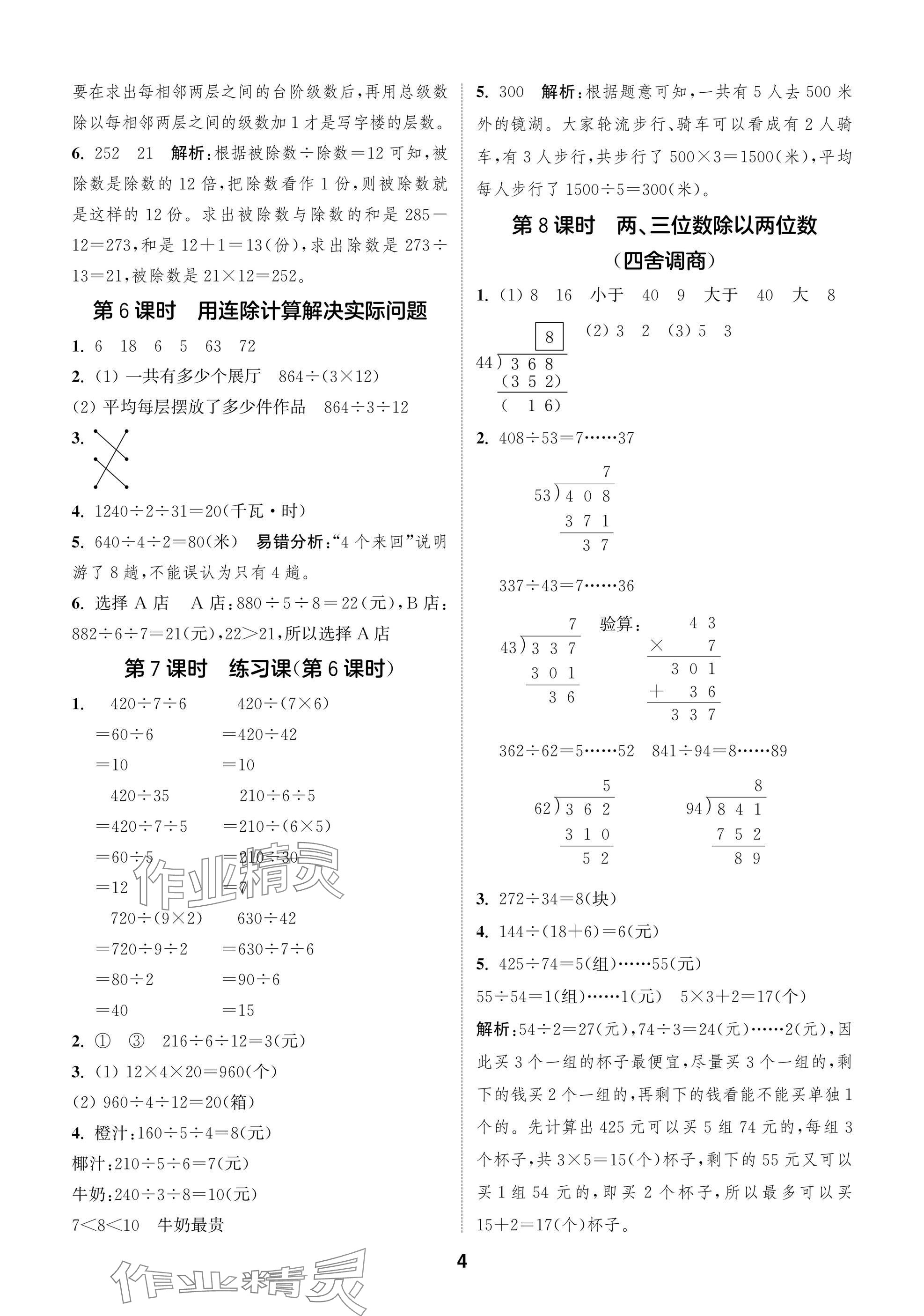 2025年课时作业本闯关练四年级数学上册苏教版参考答案第4页