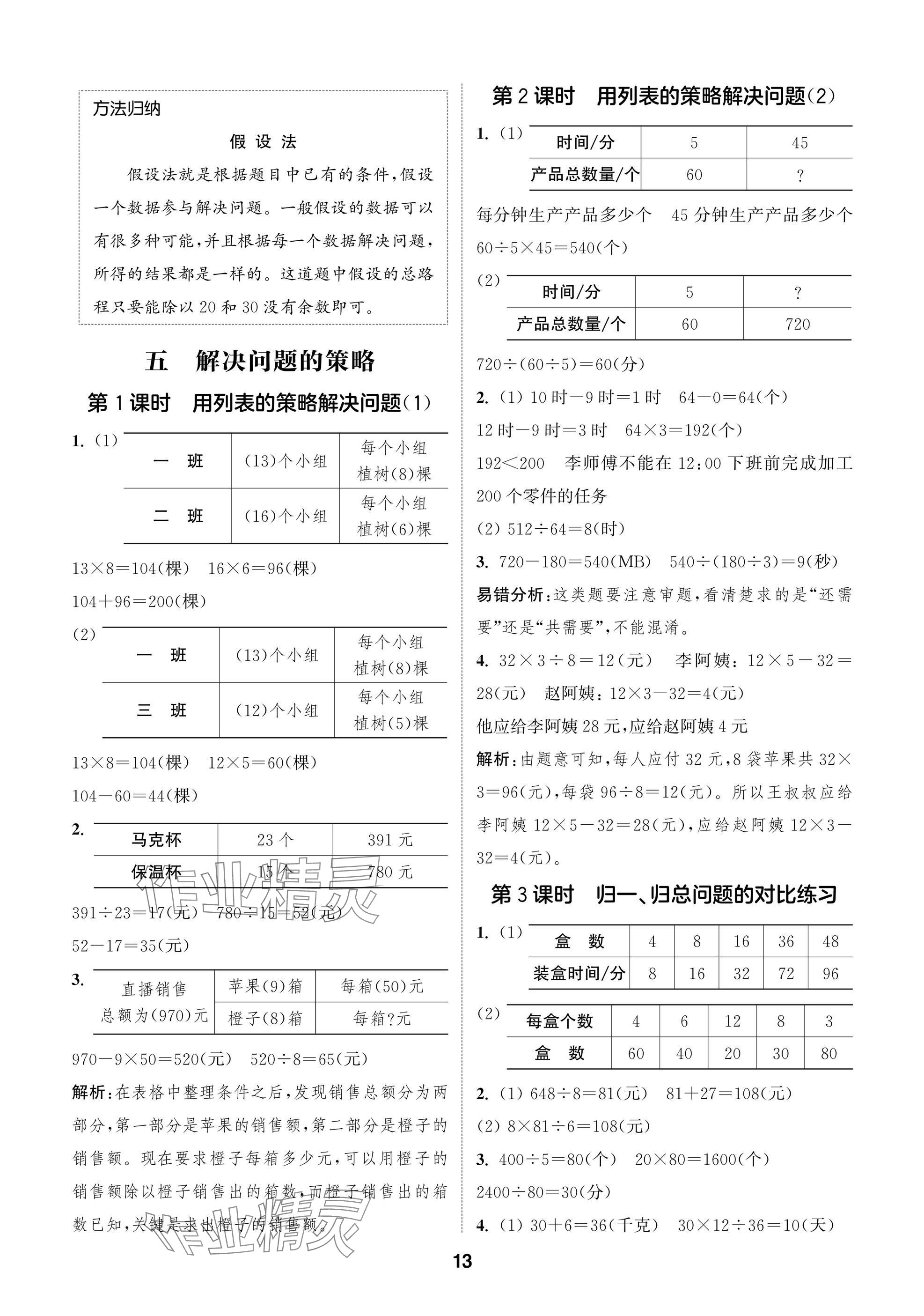 2025年课时作业本闯关练四年级数学上册苏教版参考答案第13页