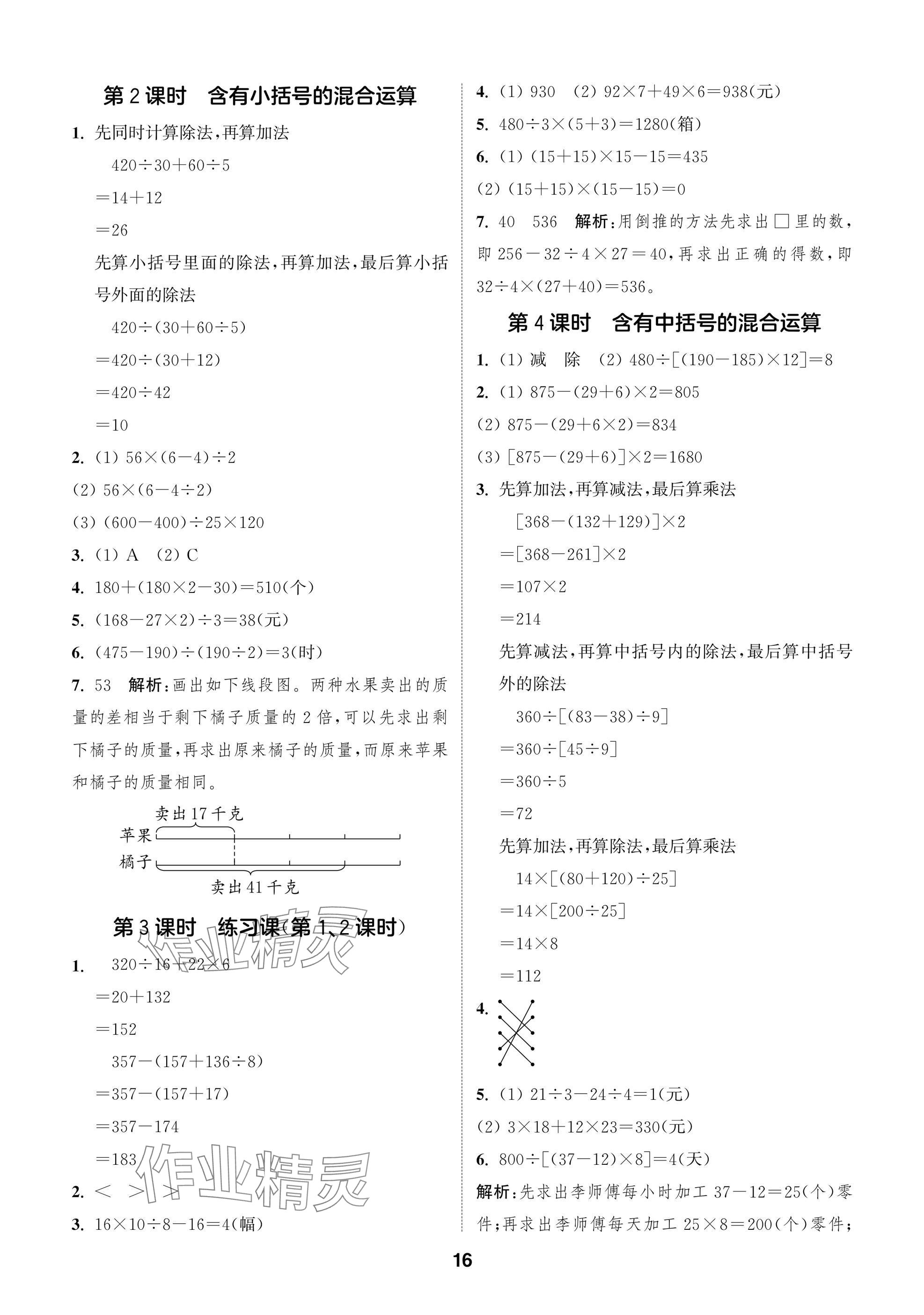 2025年课时作业本闯关练四年级数学上册苏教版参考答案第16页