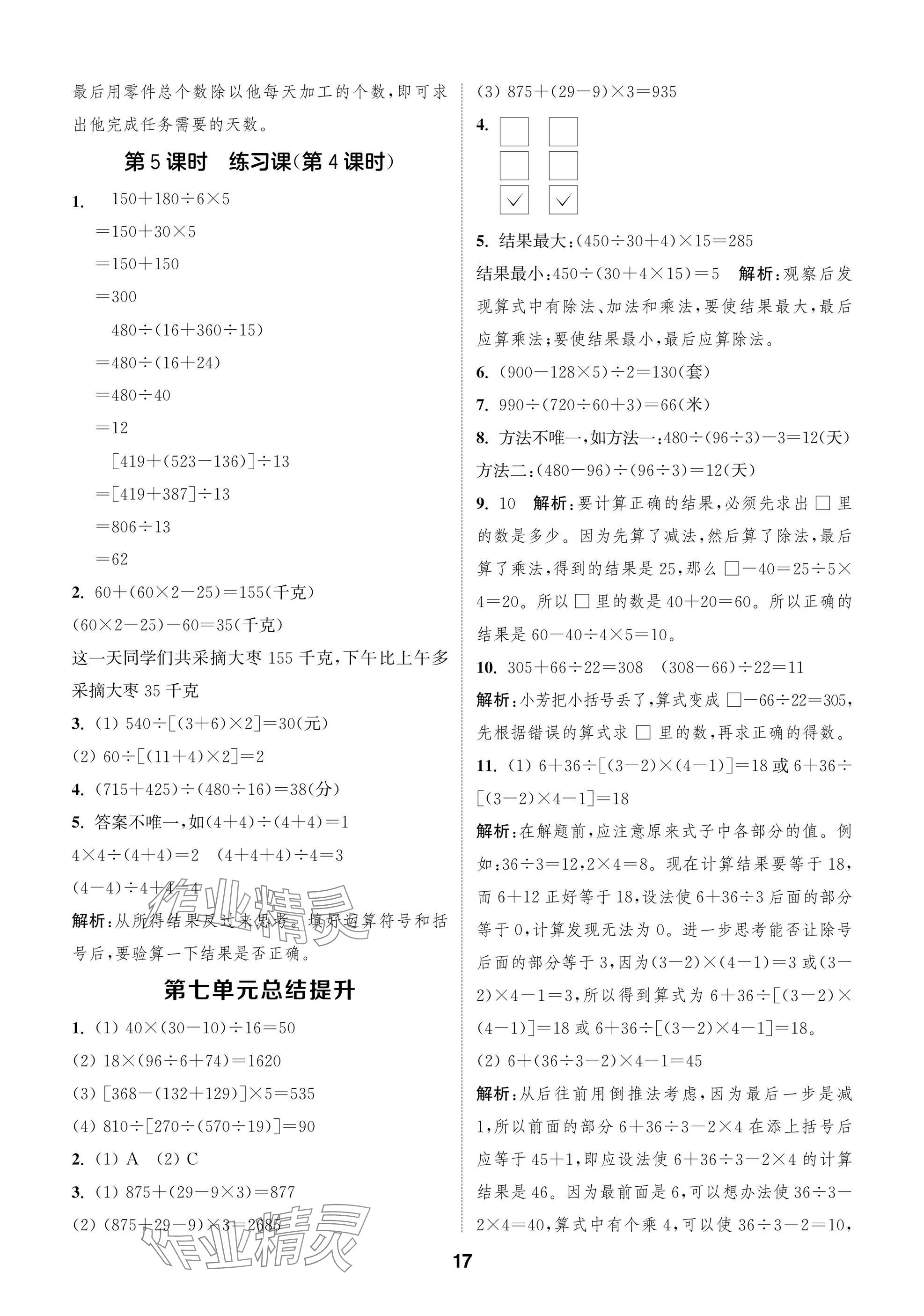 2025年课时作业本闯关练四年级数学上册苏教版参考答案第17页