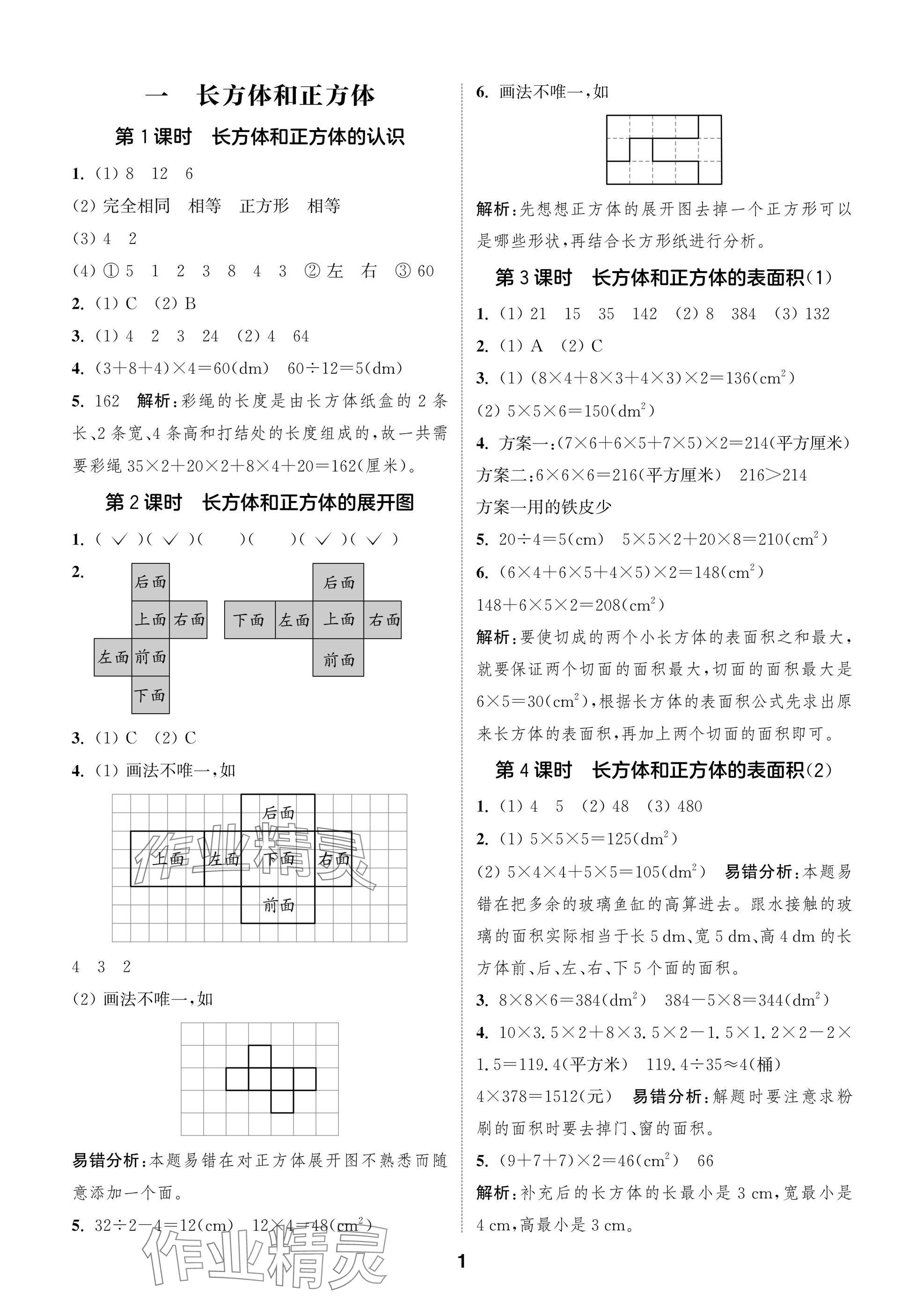 2025年课时作业本闯关练六年级数学上册苏教版参考答案第1页