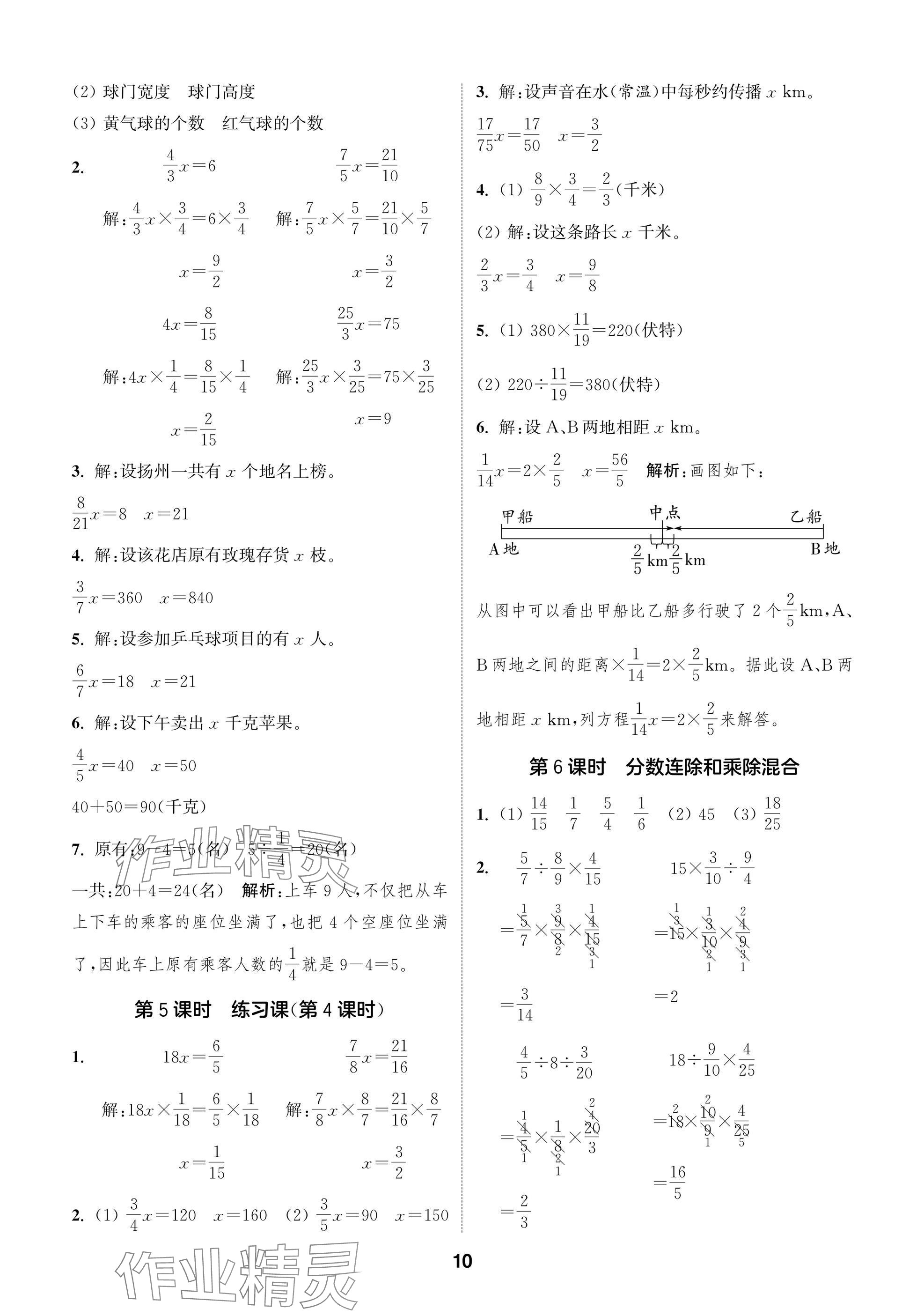 2025年课时作业本闯关练六年级数学上册苏教版参考答案第10页