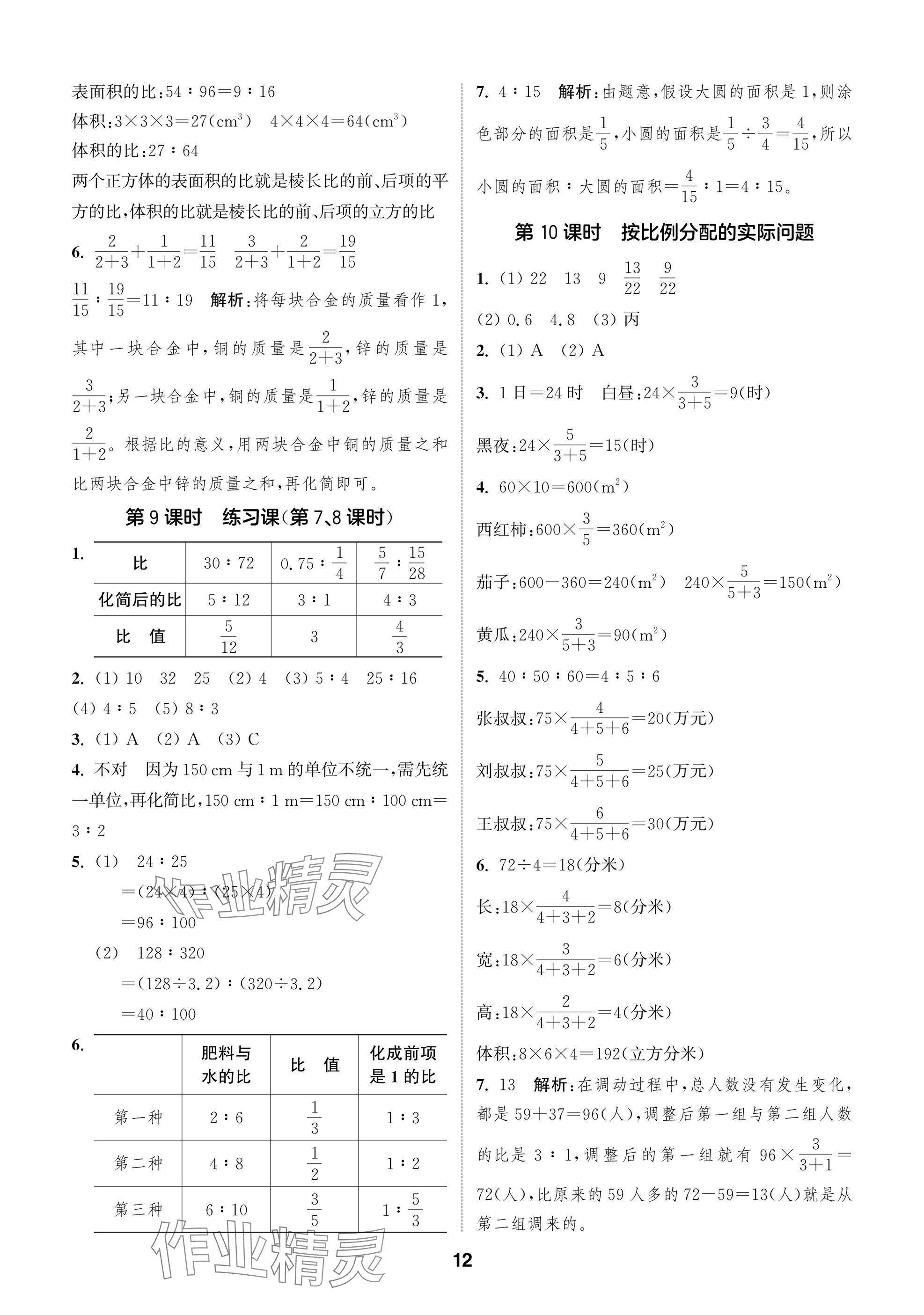 2025年课时作业本闯关练六年级数学上册苏教版参考答案第12页