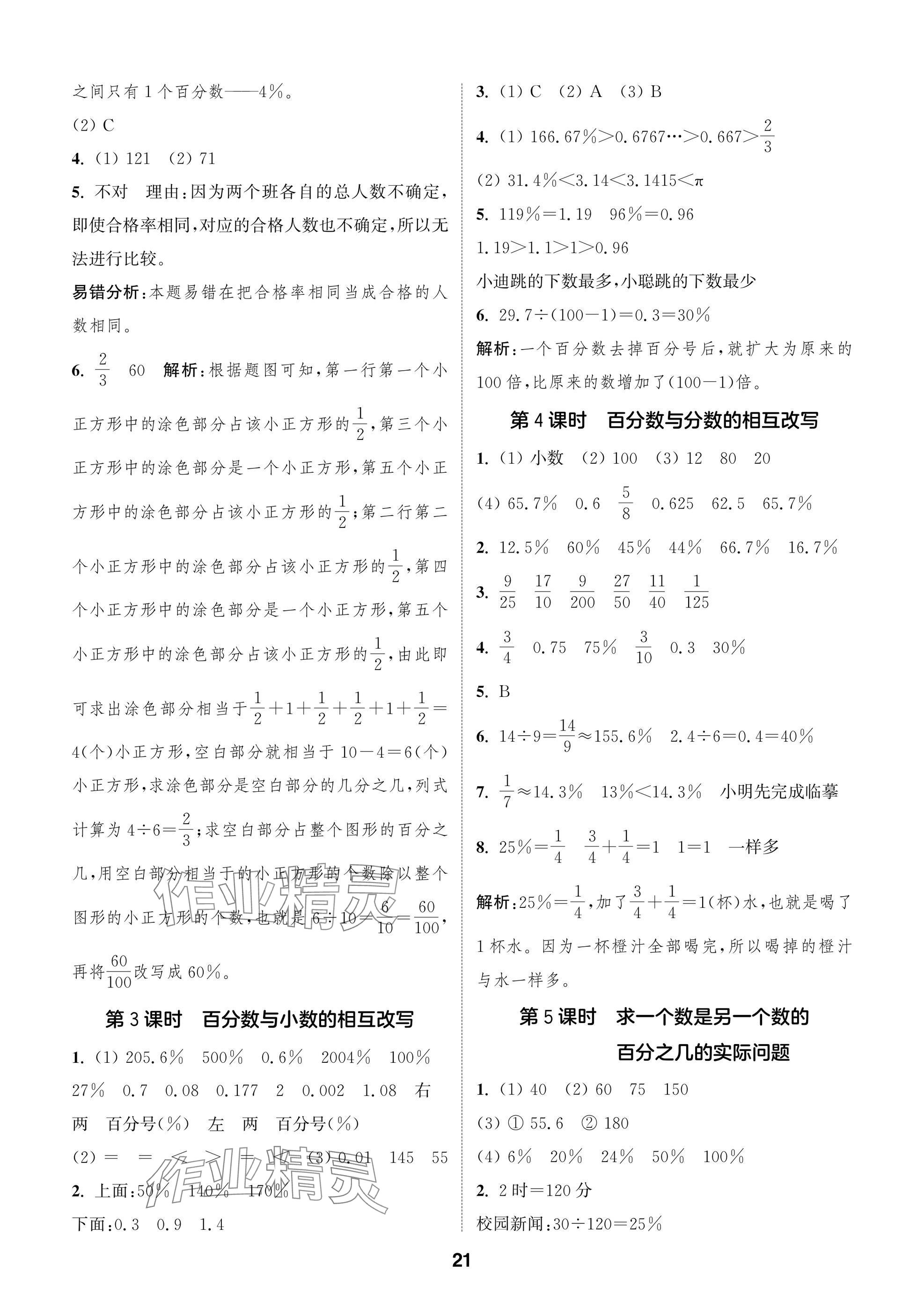 2025年课时作业本闯关练六年级数学上册苏教版参考答案第21页