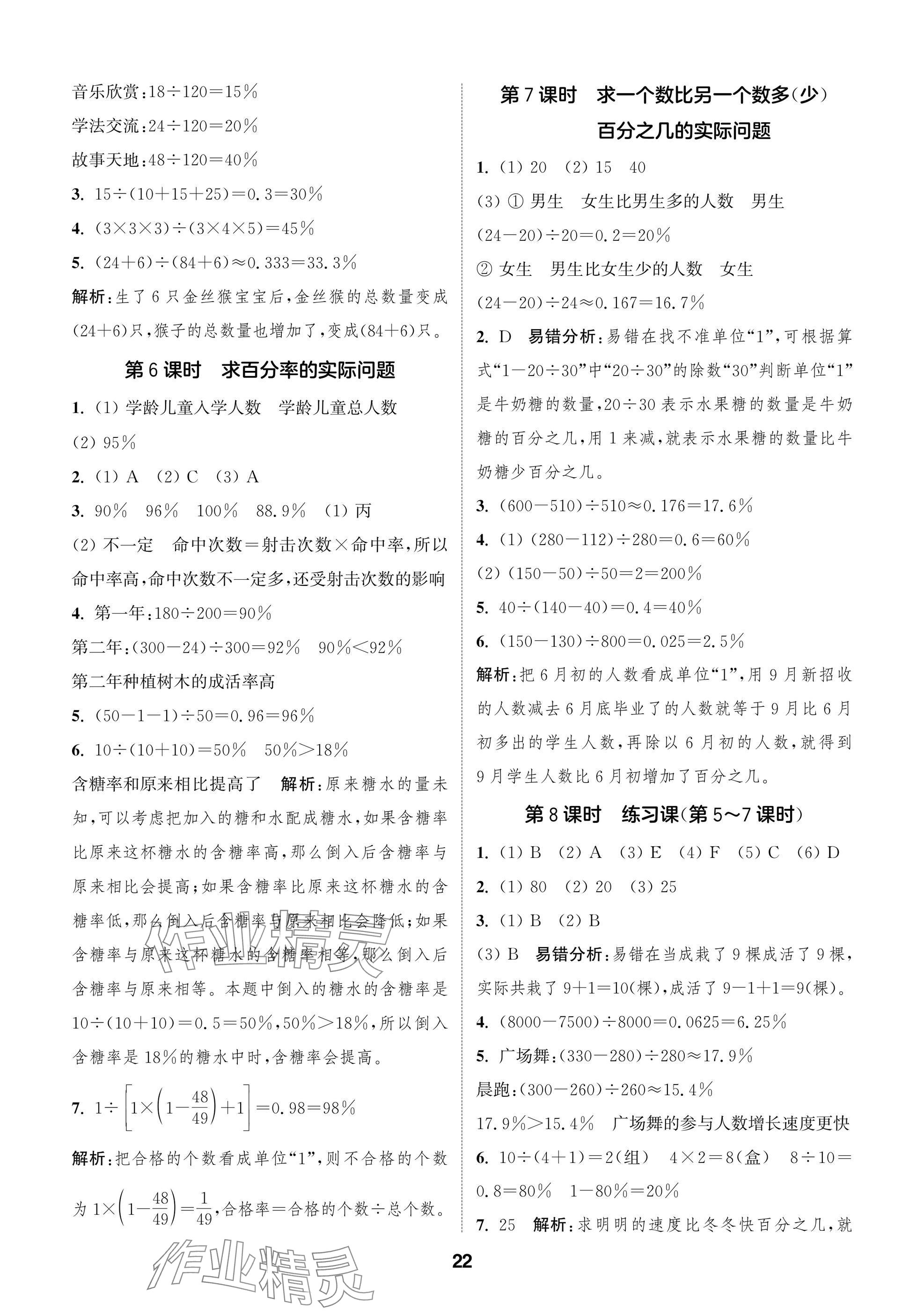 2025年课时作业本闯关练六年级数学上册苏教版参考答案第22页
