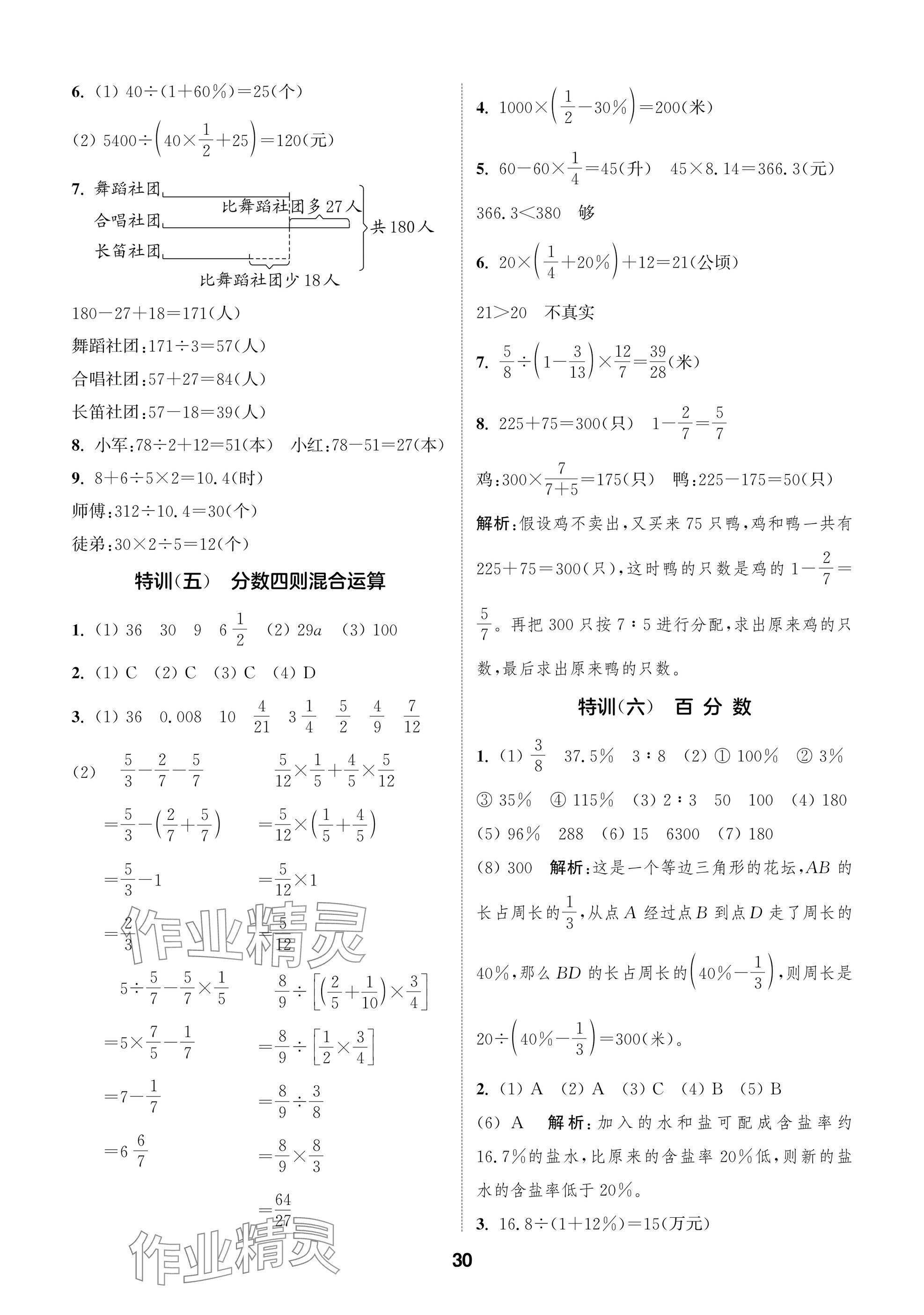 2025年课时作业本闯关练六年级数学上册苏教版参考答案第30页