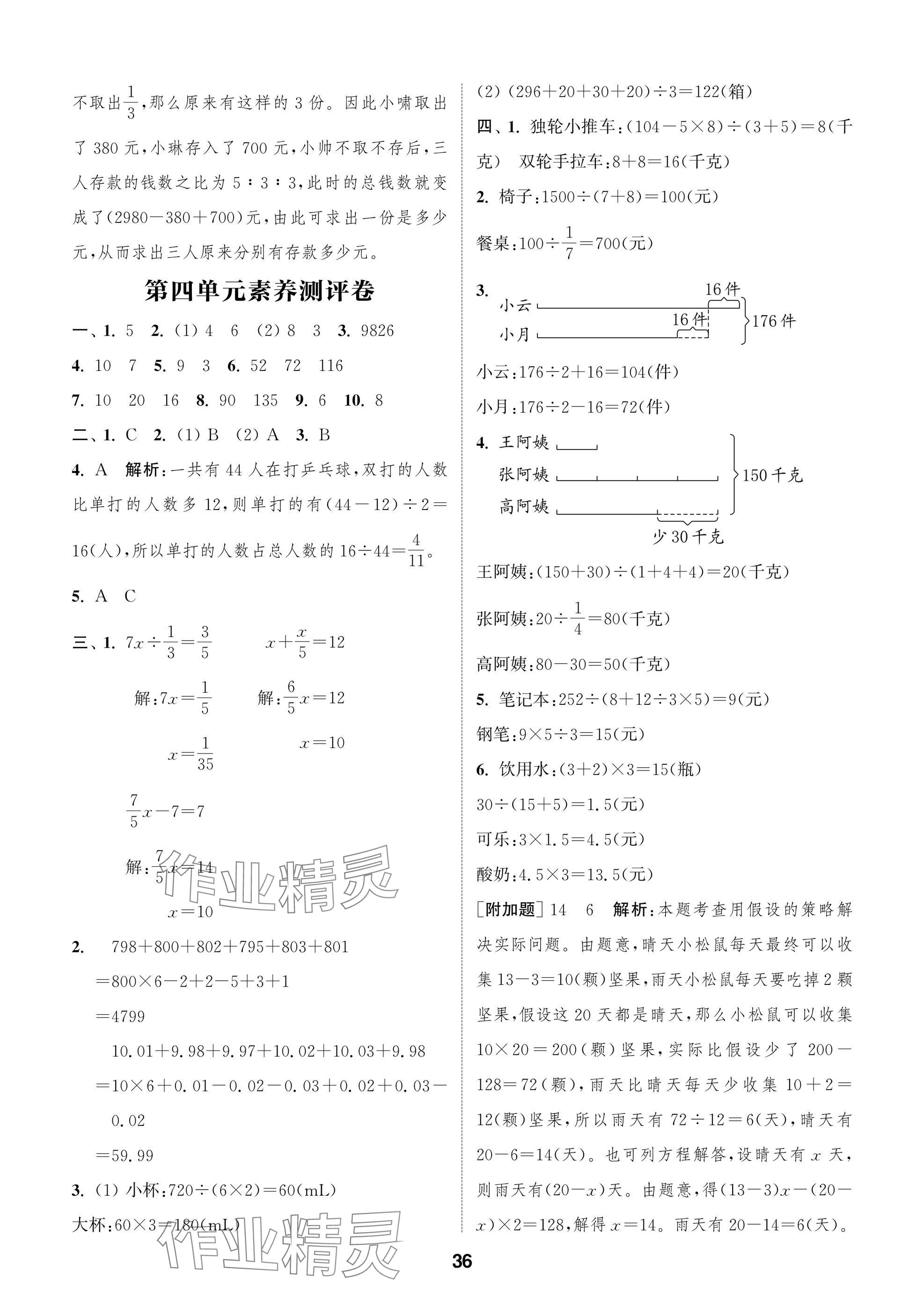 2025年课时作业本闯关练六年级数学上册苏教版参考答案第36页