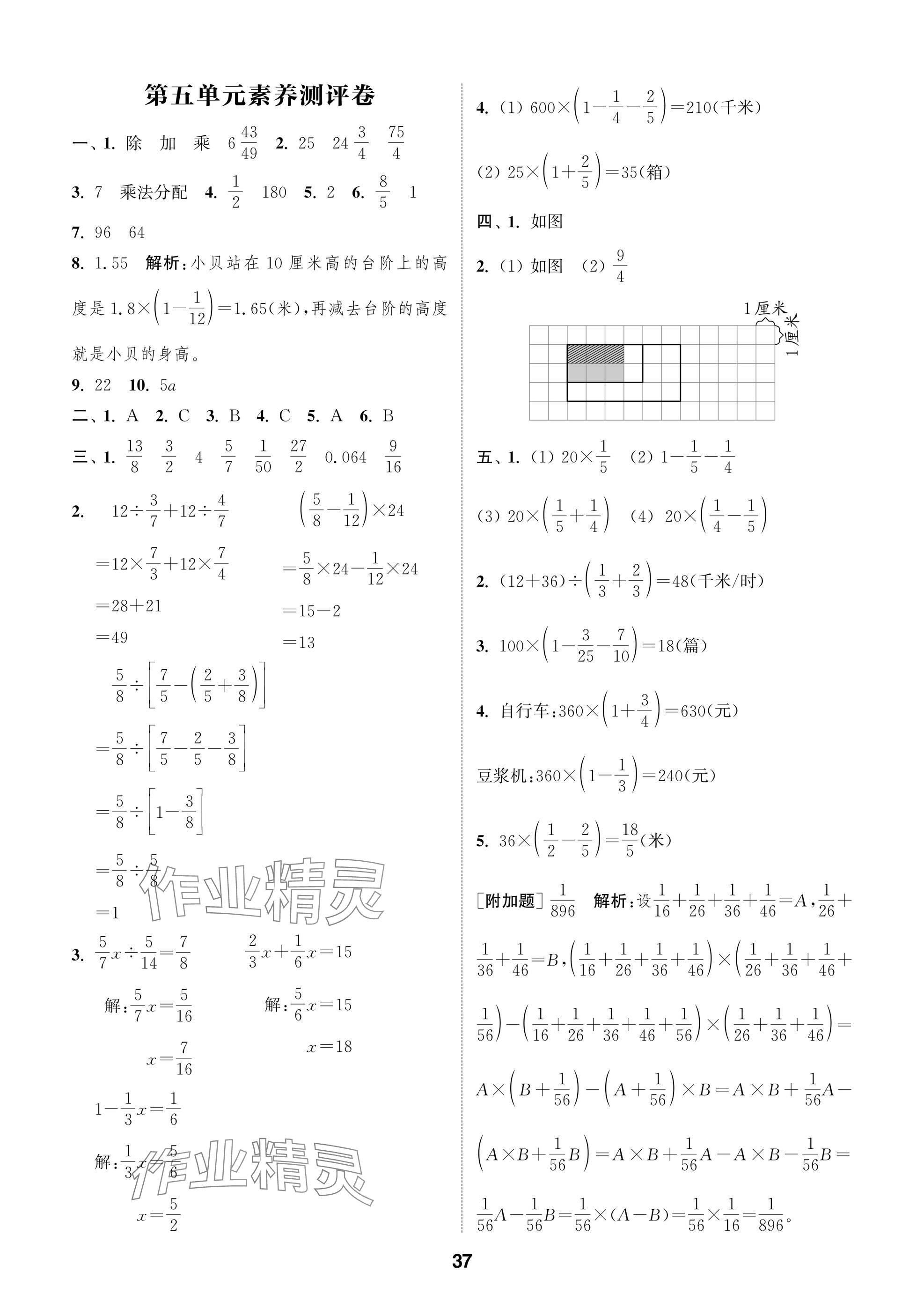 2025年课时作业本闯关练六年级数学上册苏教版参考答案第37页