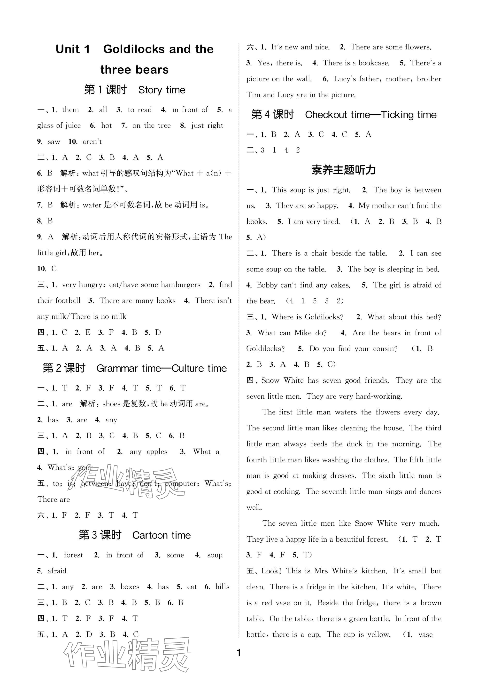 2025年课时作业本闯关练五年级英语上册译林版参考答案第1页