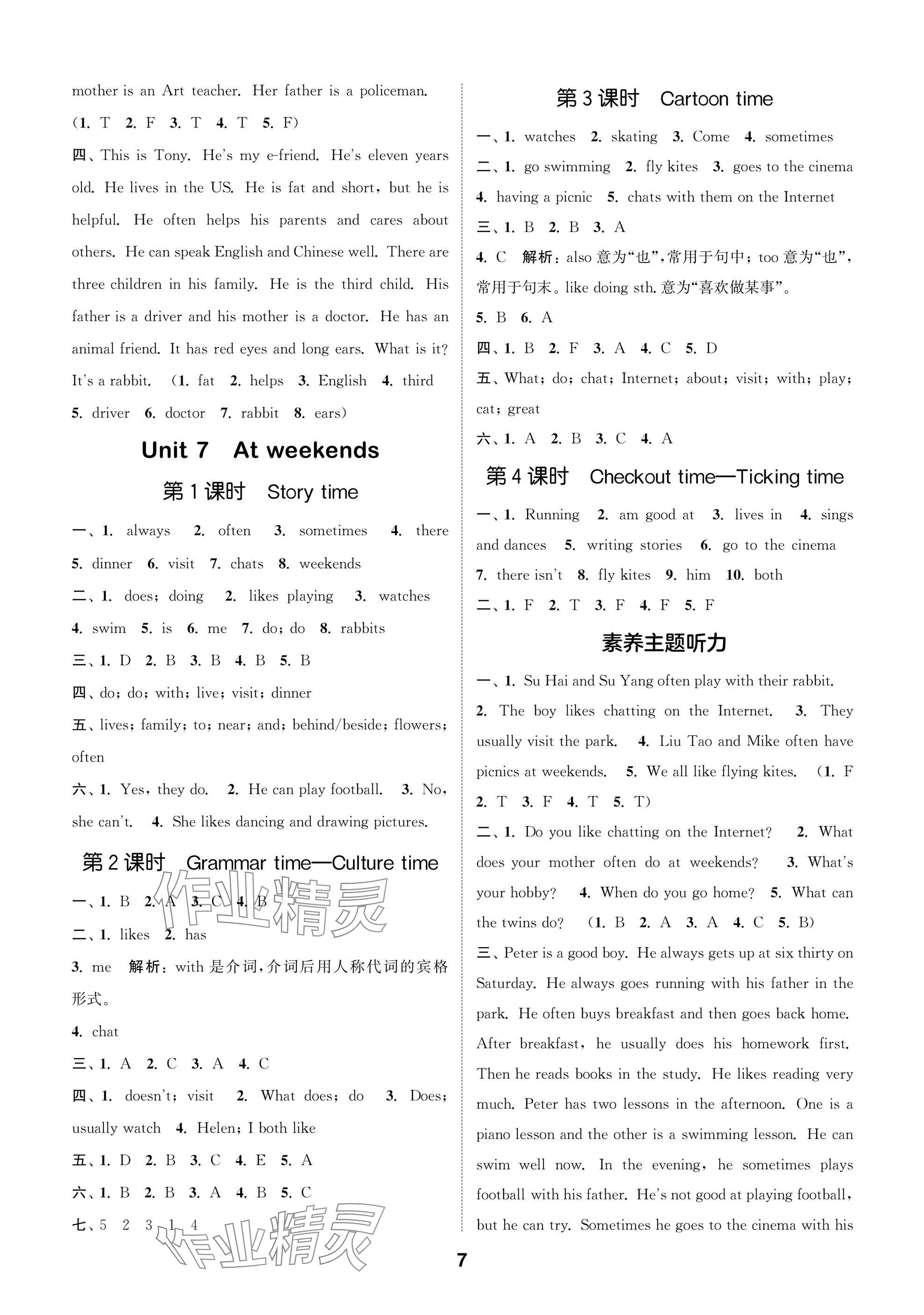 2025年课时作业本闯关练五年级英语上册译林版参考答案第7页