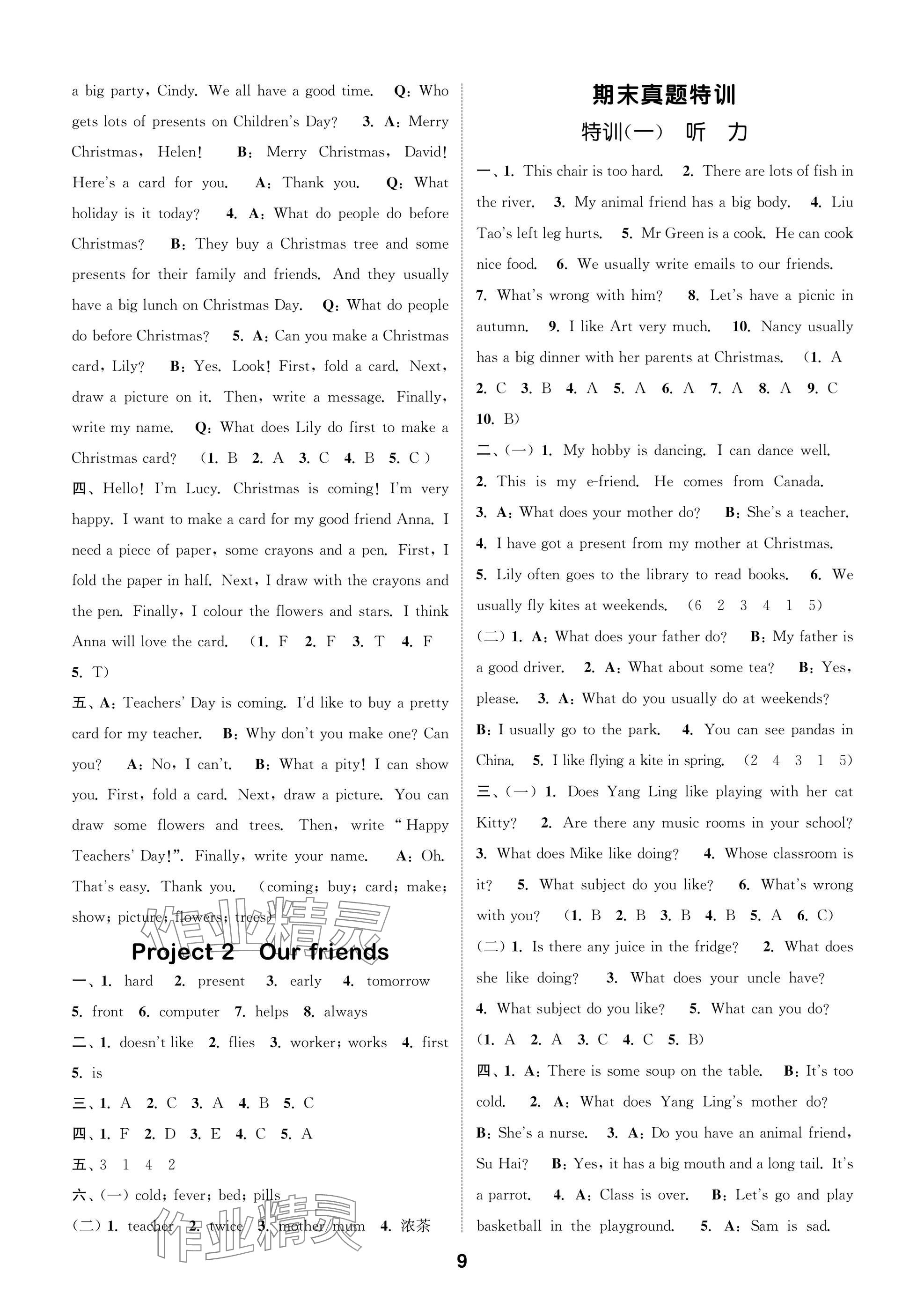 2025年课时作业本闯关练五年级英语上册译林版参考答案第9页