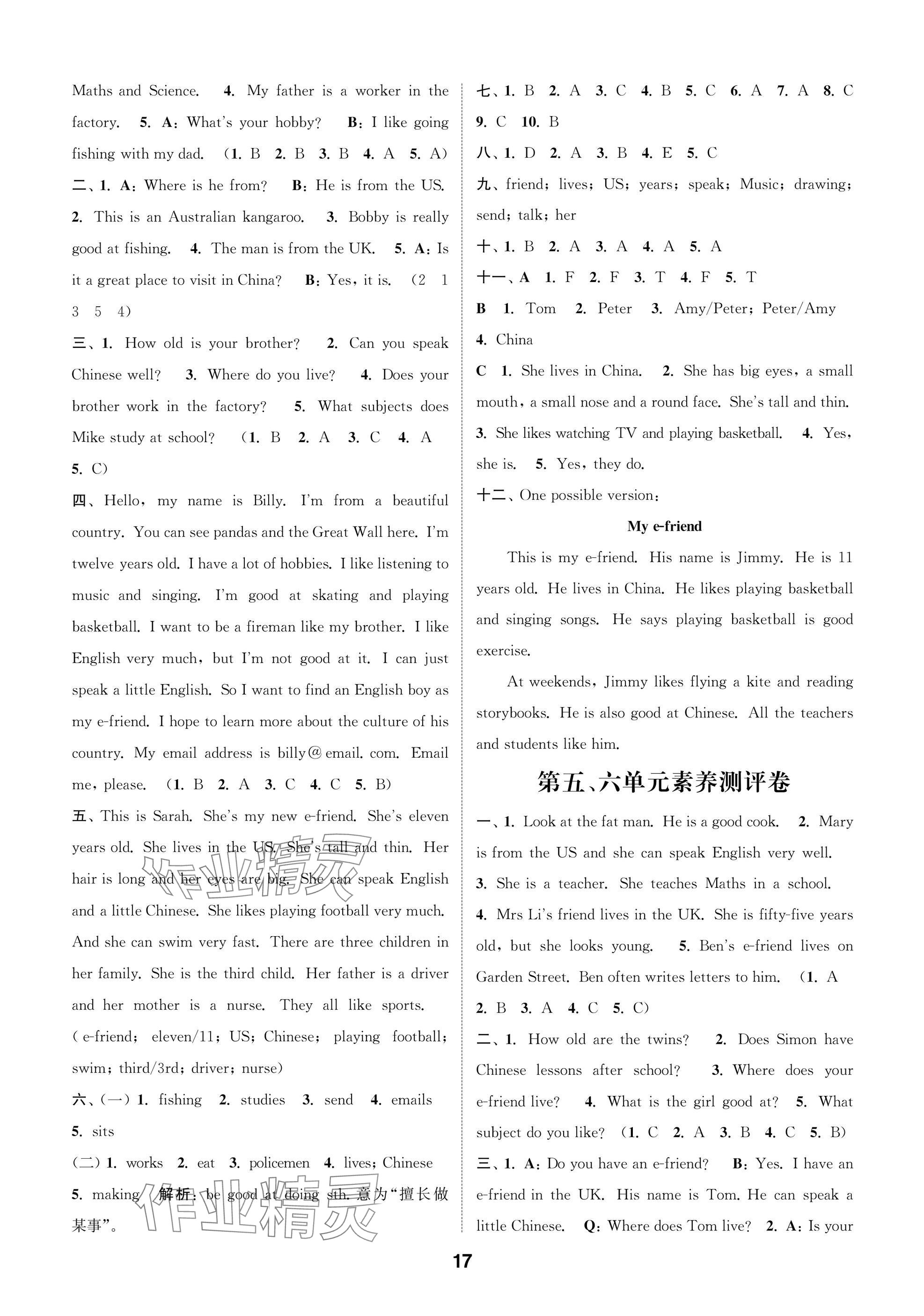 2025年课时作业本闯关练五年级英语上册译林版参考答案第17页