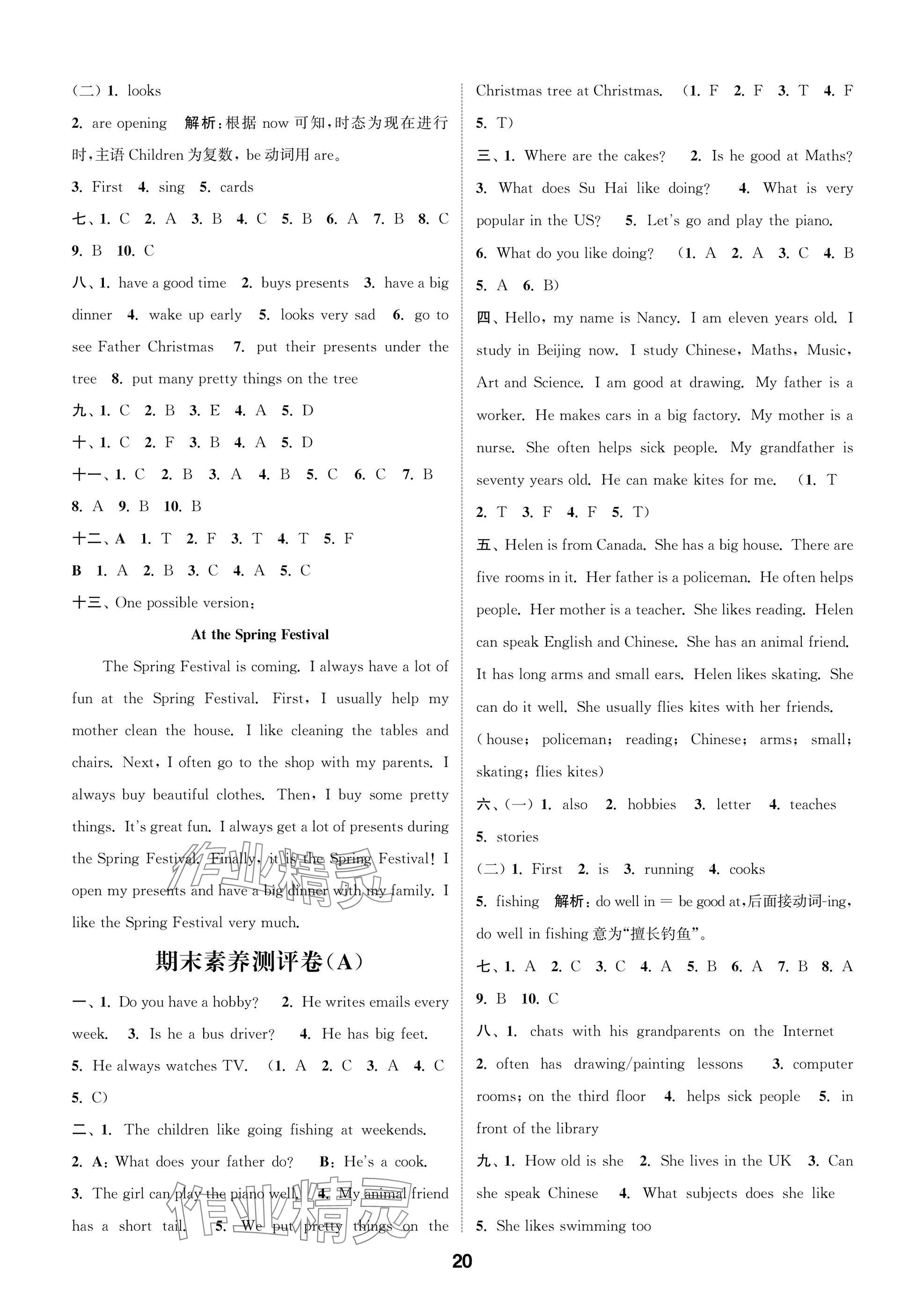 2025年课时作业本闯关练五年级英语上册译林版参考答案第20页