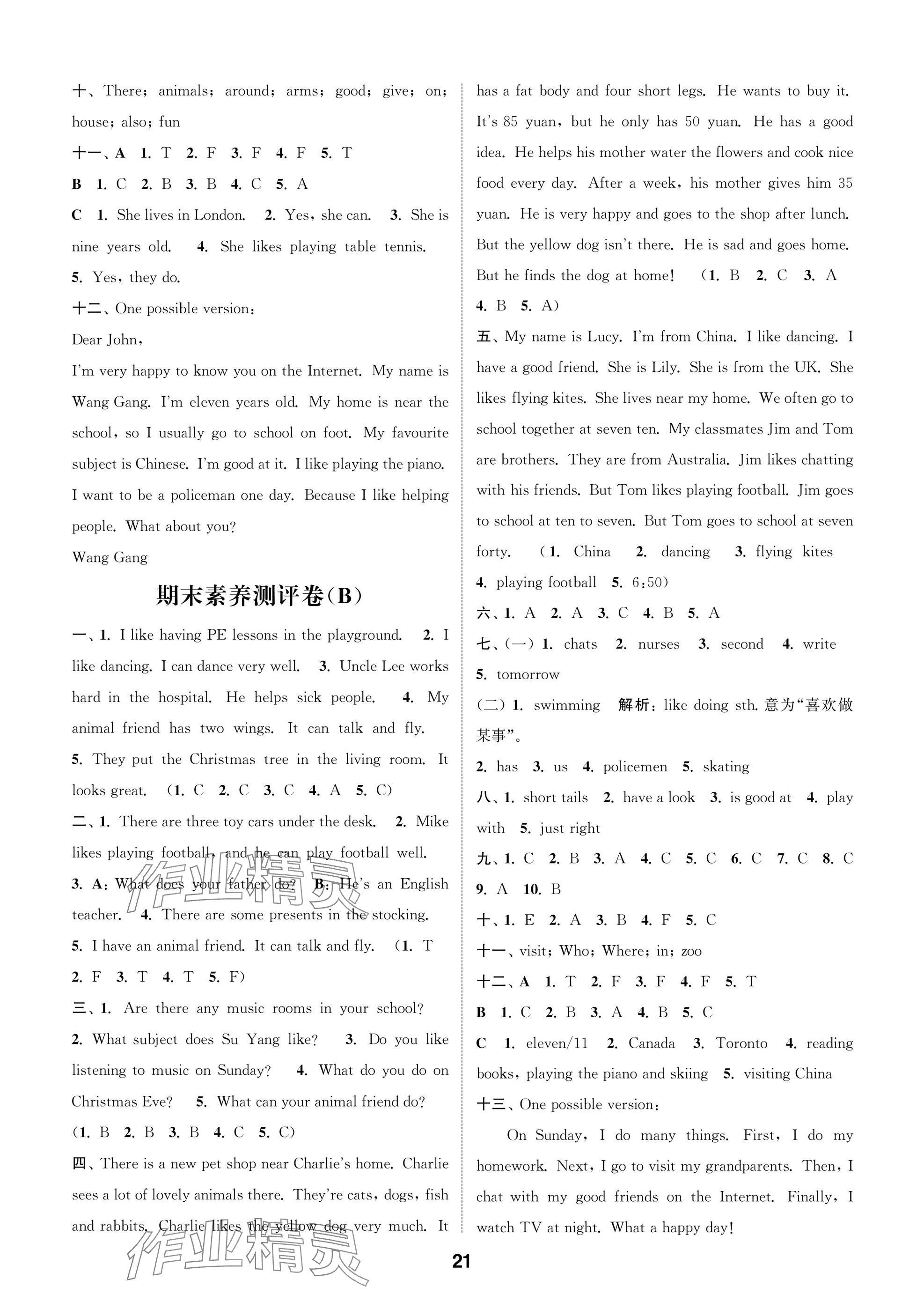 2025年课时作业本闯关练五年级英语上册译林版参考答案第21页