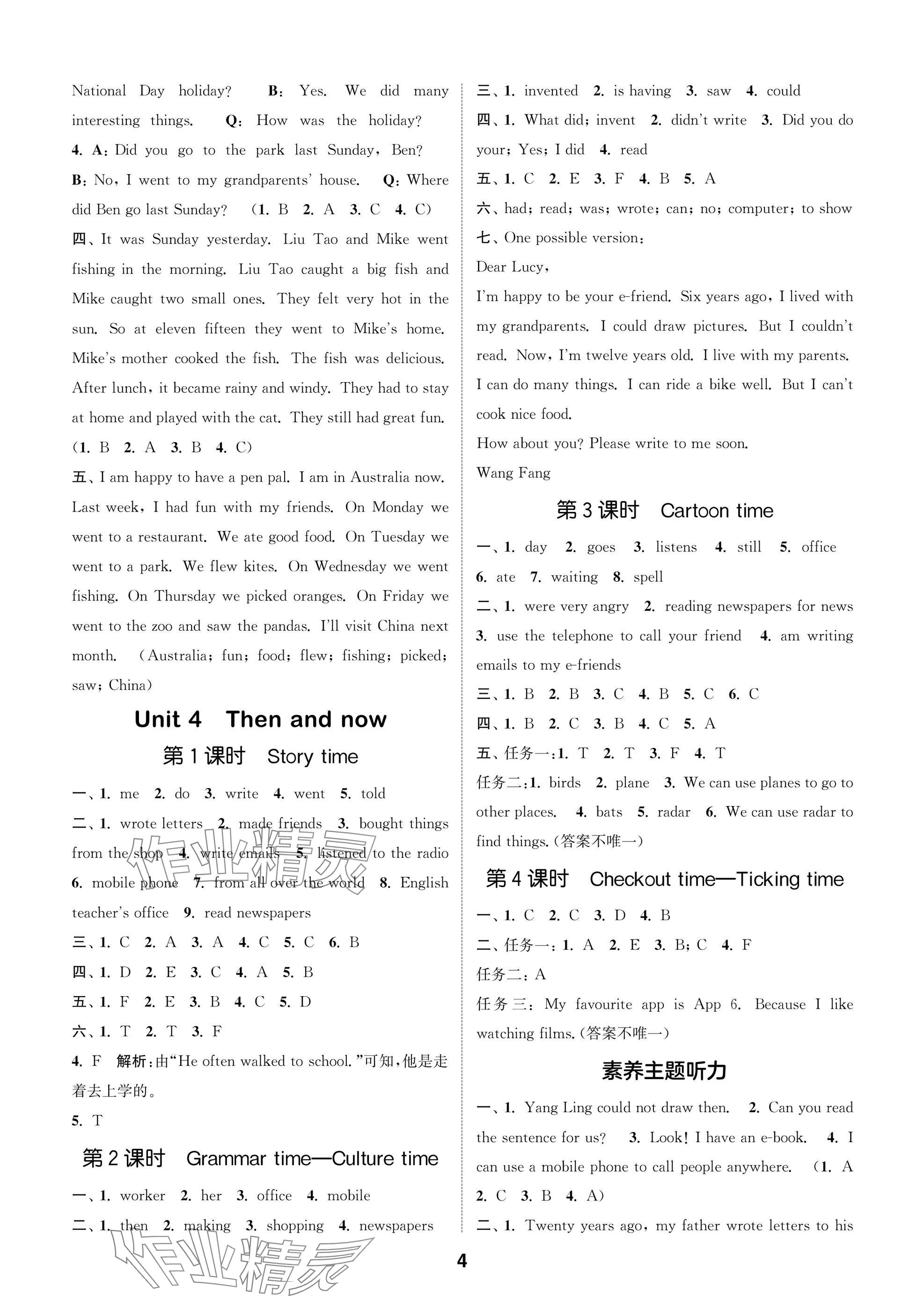 2025年课时作业本闯关练六年级英语上册译林版参考答案第4页