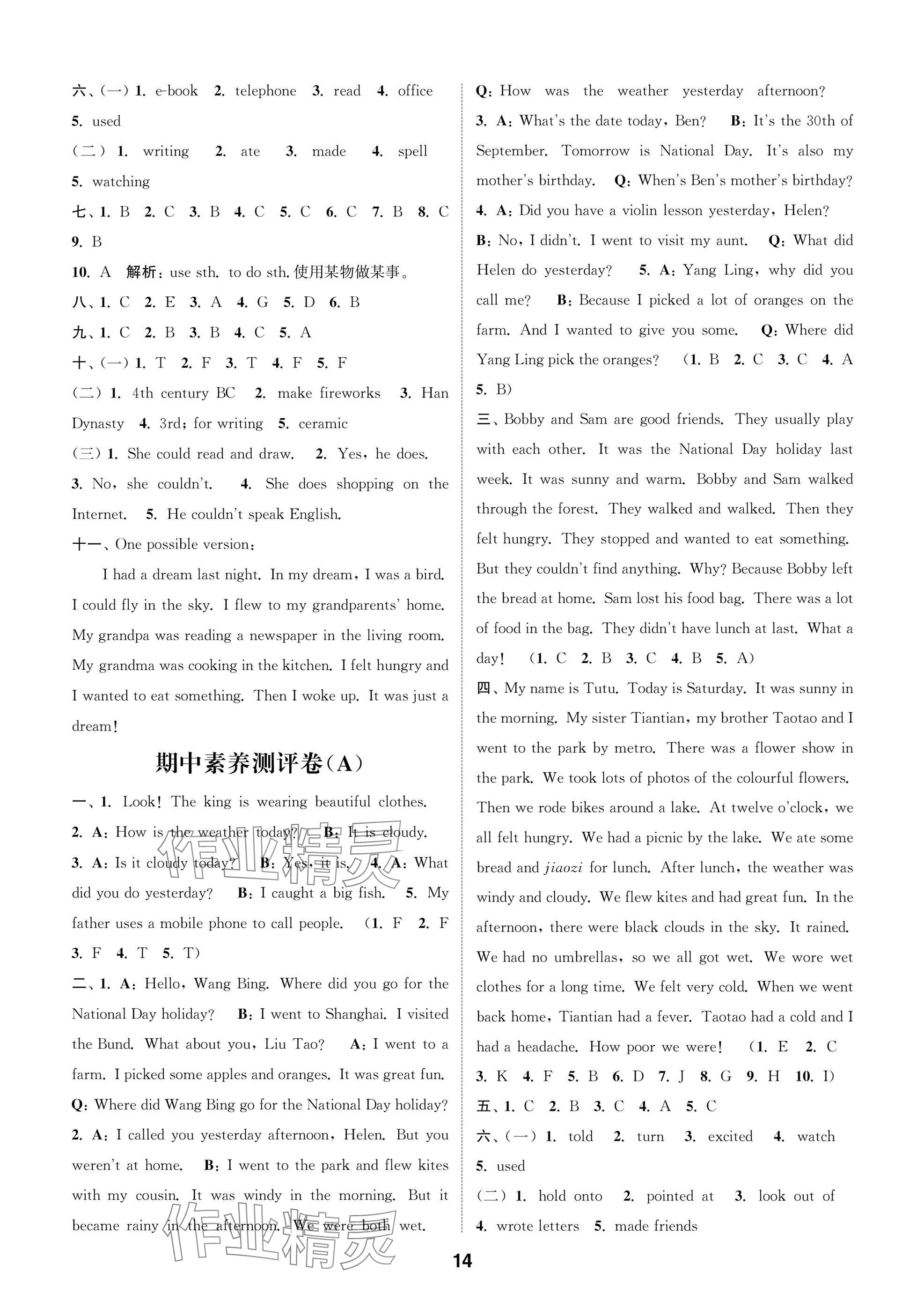 2025年课时作业本闯关练六年级英语上册译林版参考答案第14页