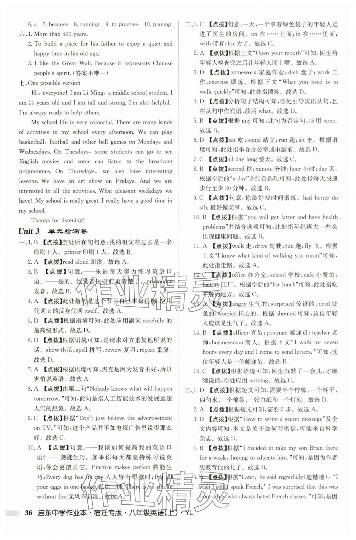 2025年启东中学作业本八年级英语上册译林版宿迁专版第36页