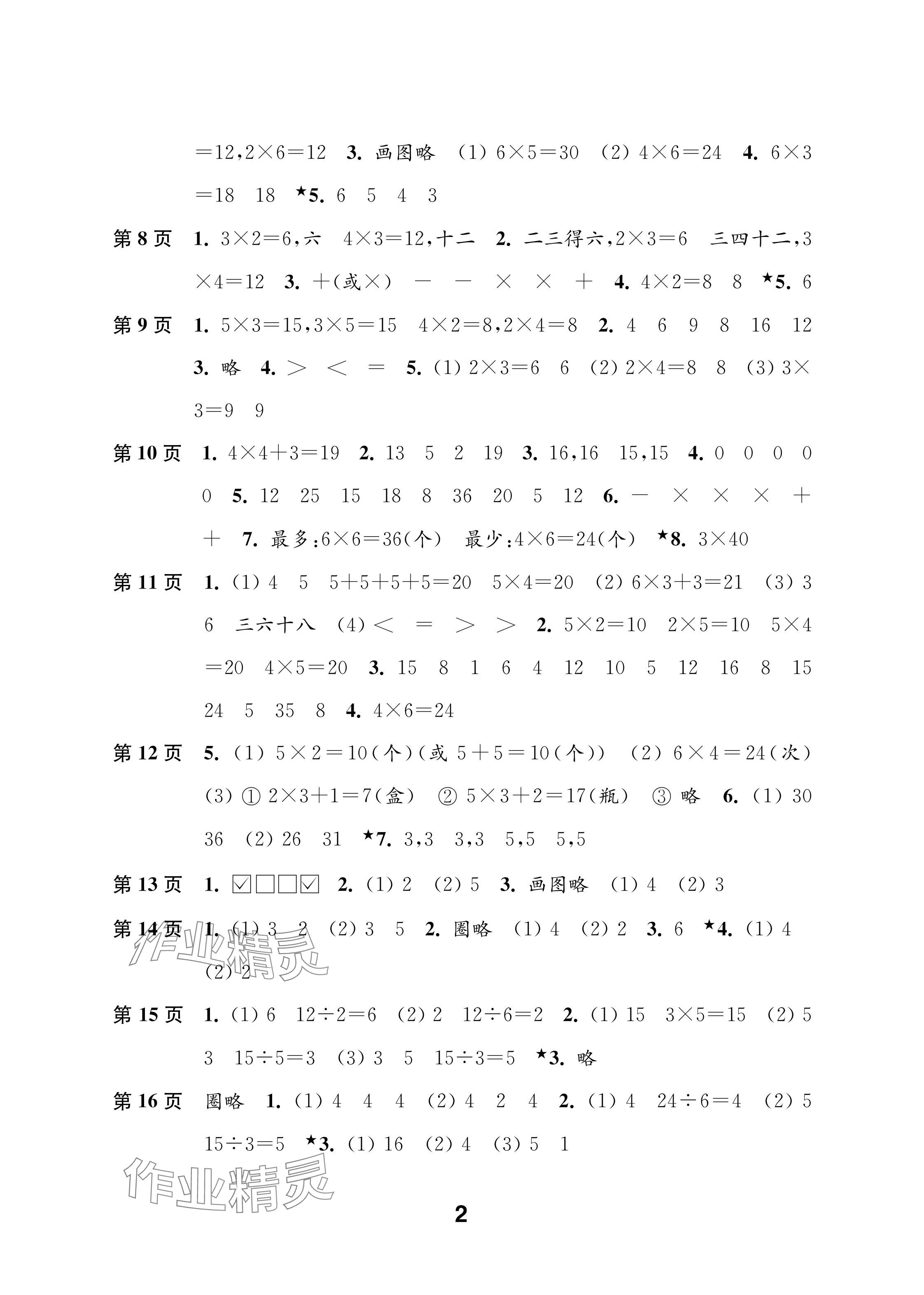2025年练习与测试二年级数学上册苏教版含强化拓展活页试卷参考答案第2页