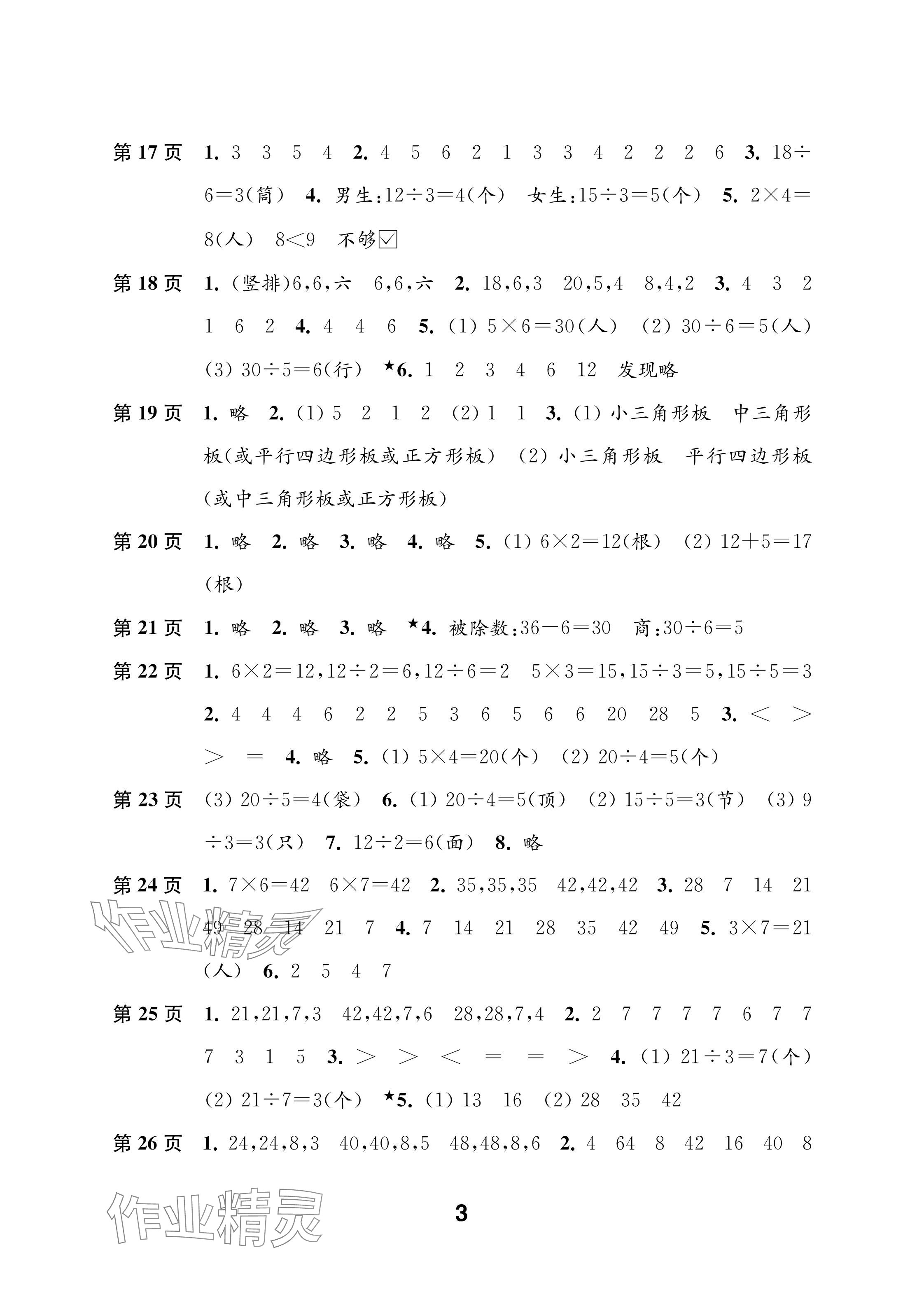 2025年练习与测试二年级数学上册苏教版含强化拓展活页试卷参考答案第3页