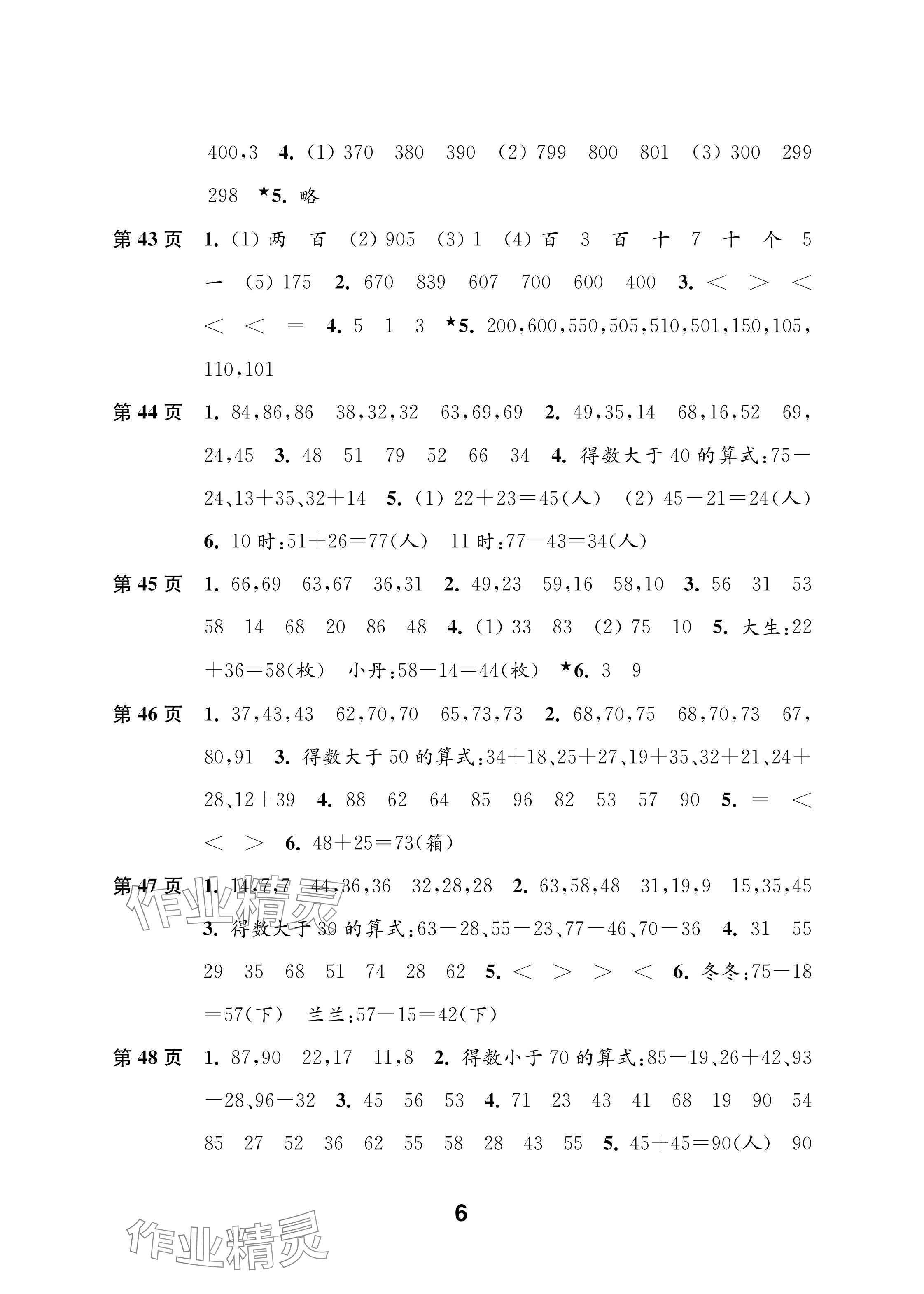 2025年练习与测试二年级数学上册苏教版含强化拓展活页试卷参考答案第6页