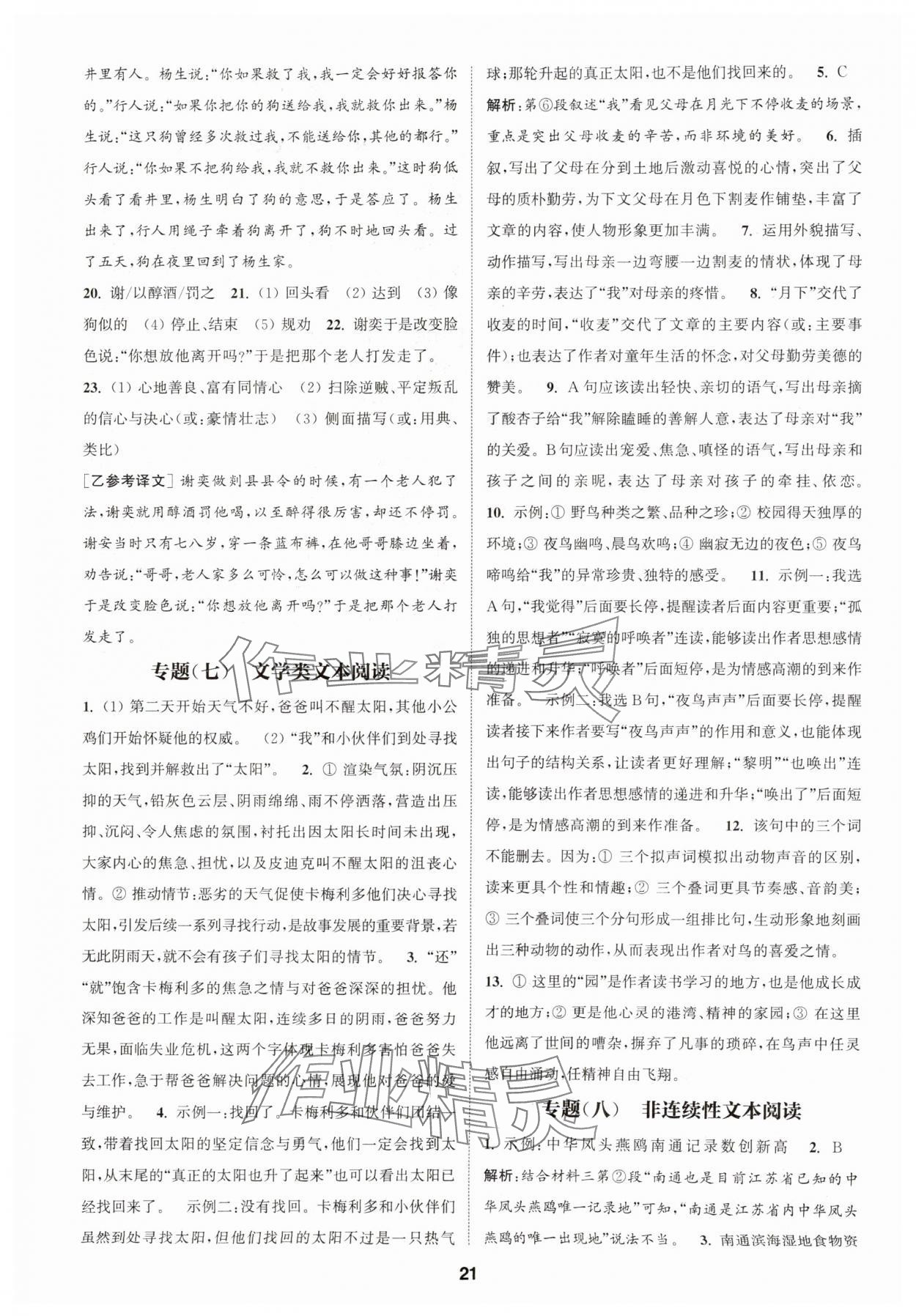 2025年通城学典课时作业本七年级语文上册人教版南通专版第21页