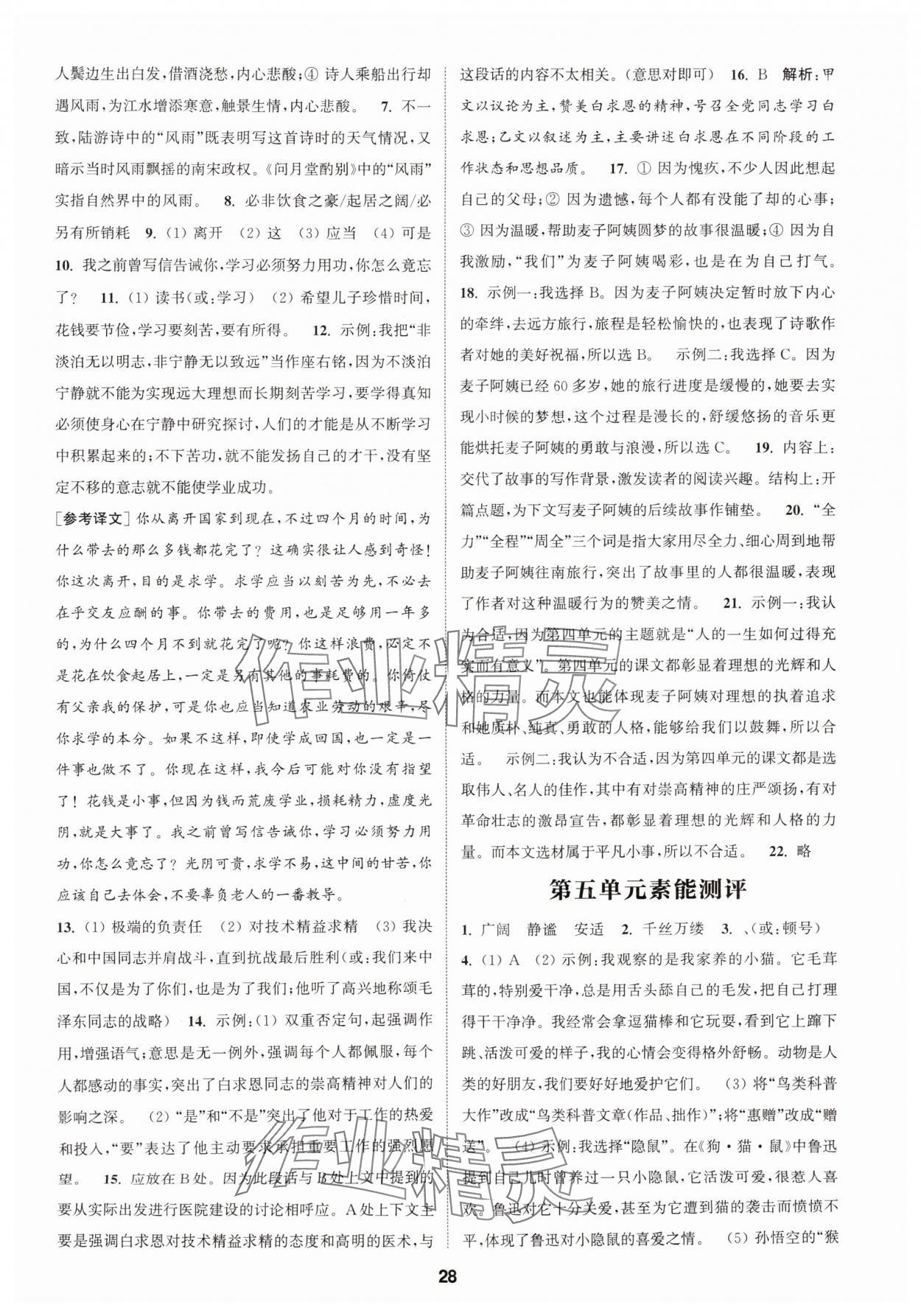 2025年通城学典课时作业本七年级语文上册人教版南通专版第28页