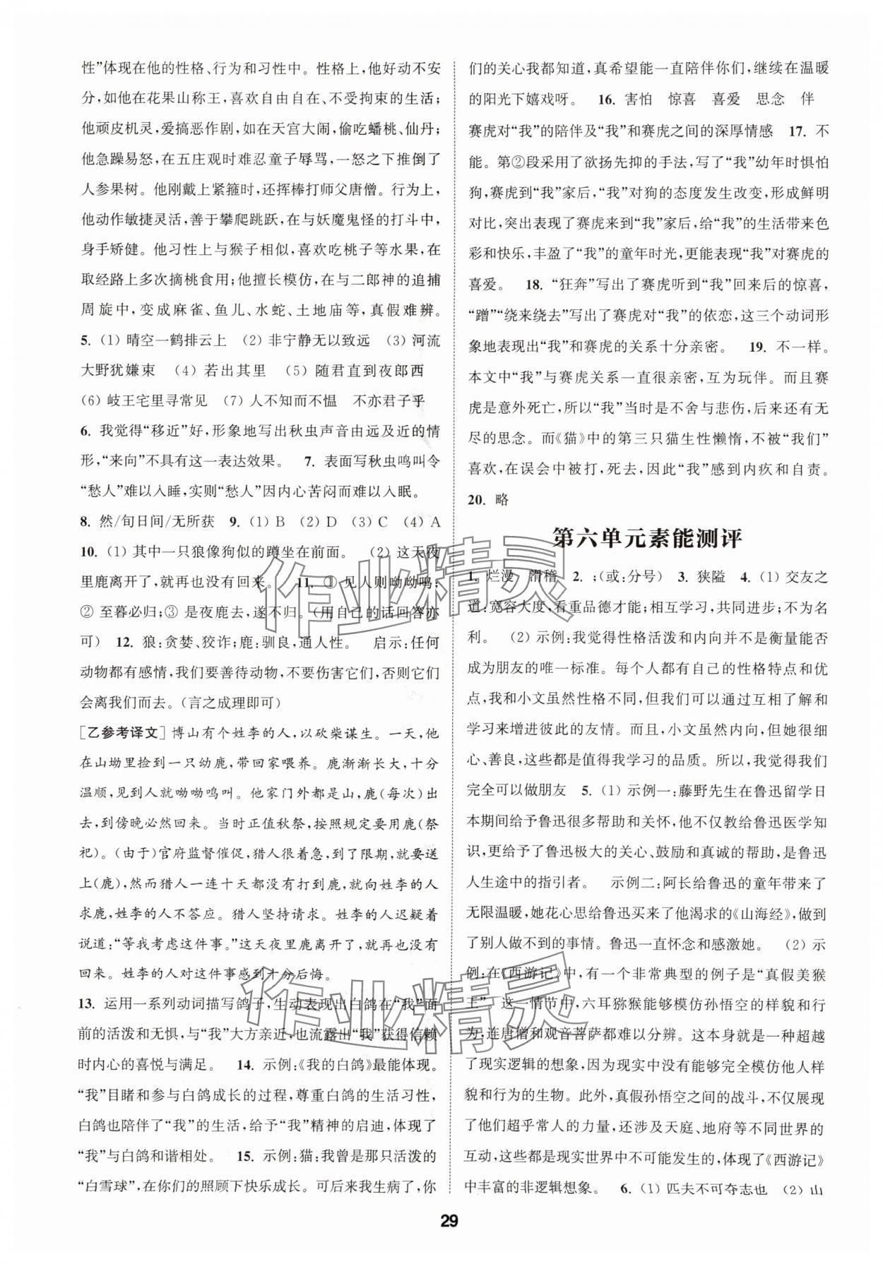 2025年通城学典课时作业本七年级语文上册人教版南通专版第29页