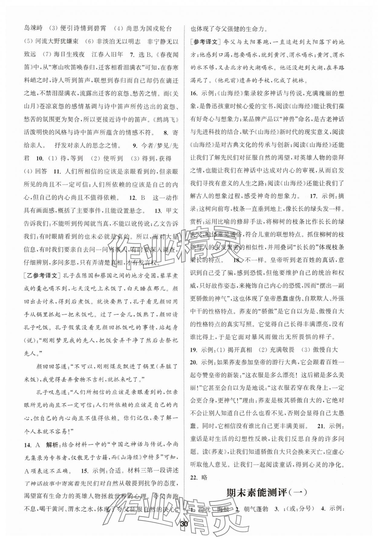 2025年通城学典课时作业本七年级语文上册人教版南通专版第30页