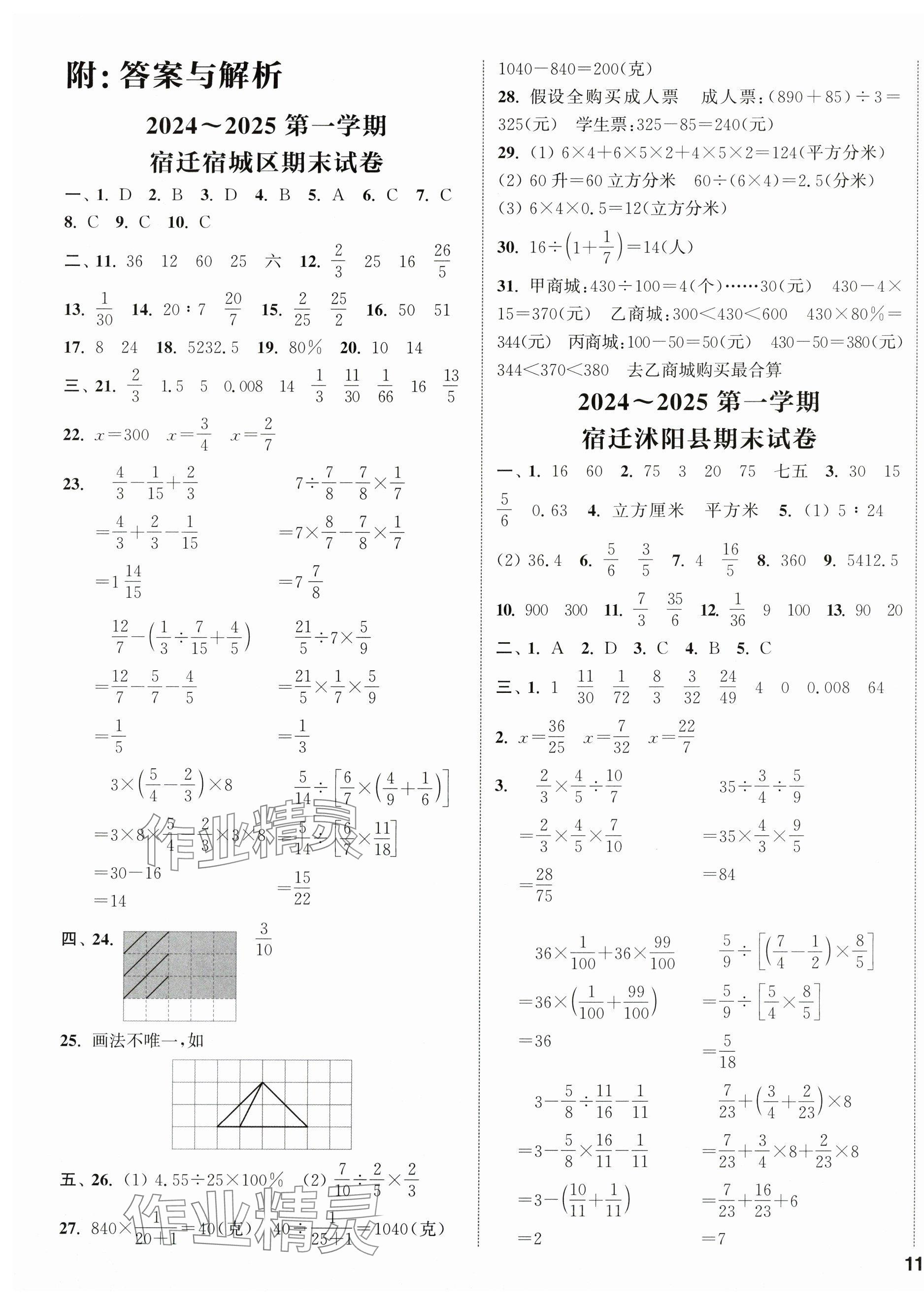 2025年课时作业本闯关练六年级数学上册苏教版参考答案第41页