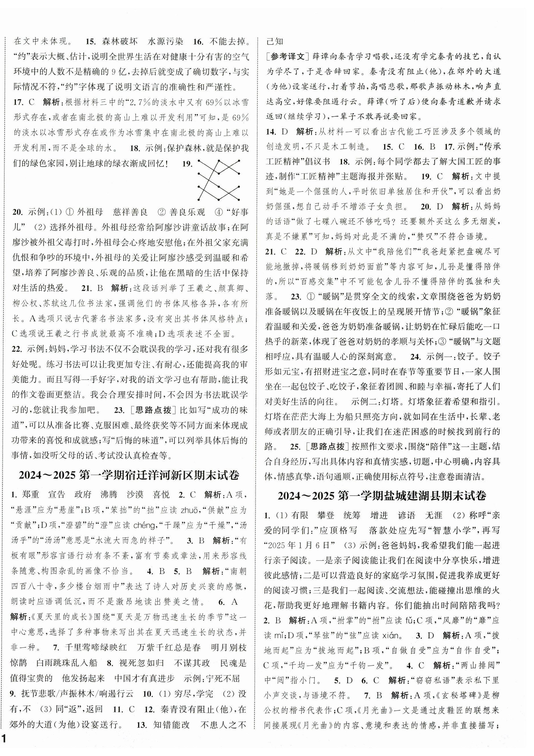 2025年课时作业本闯关练六年级语文上册人教版参考答案第34页