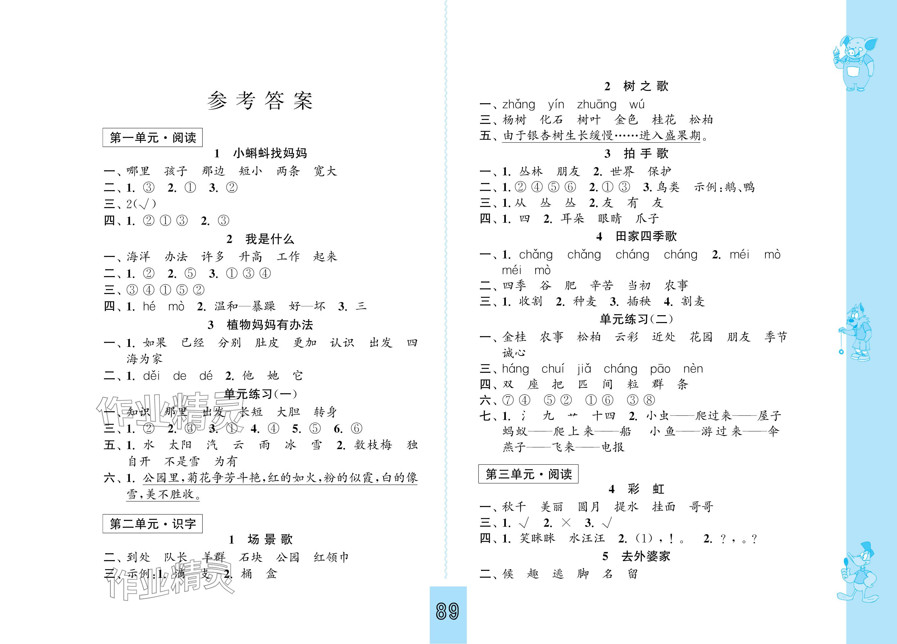 2025年练习与测试二年级语文上册人教版参考答案第1页
