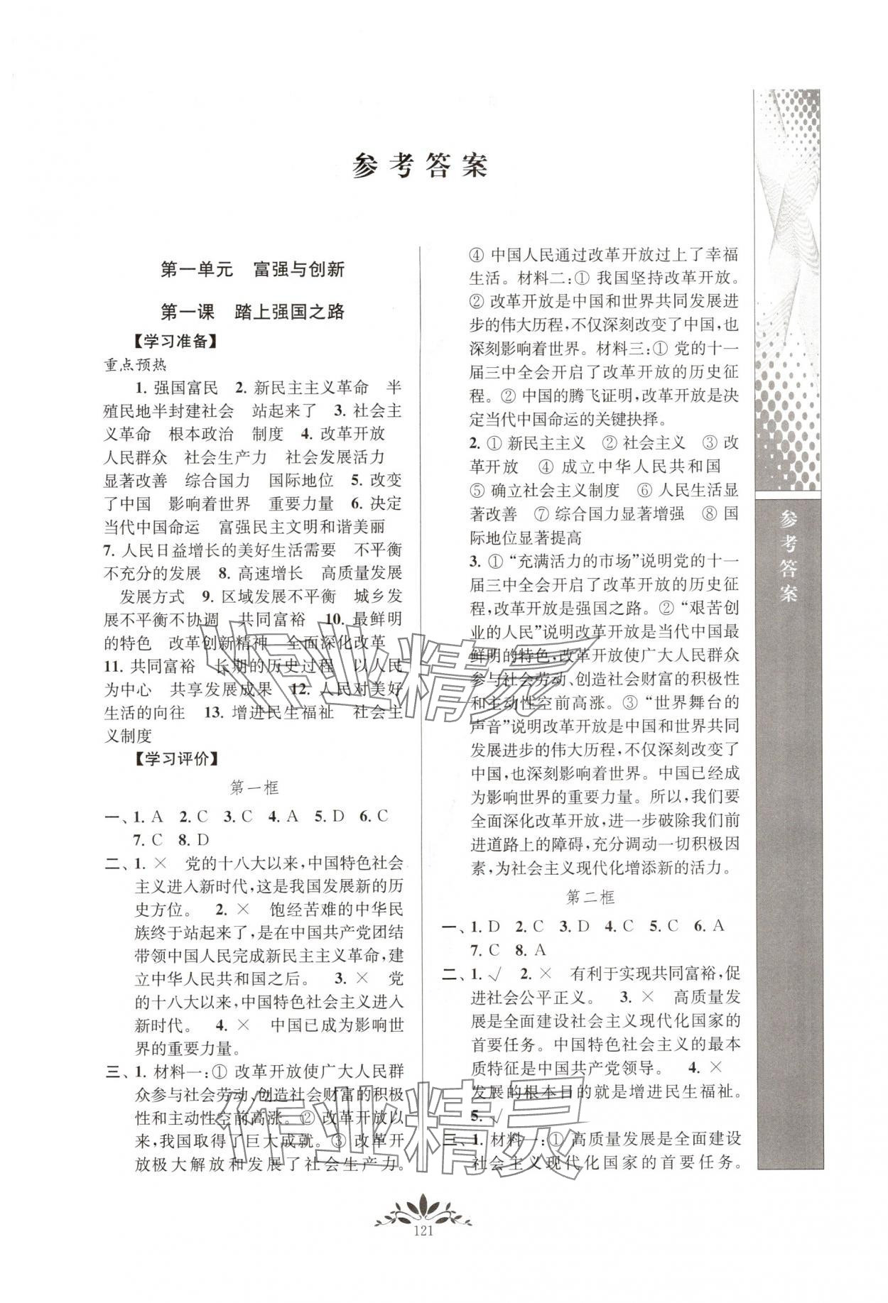2025年新课程自主学习与测评九年级道德与法治上册人教版第1页
